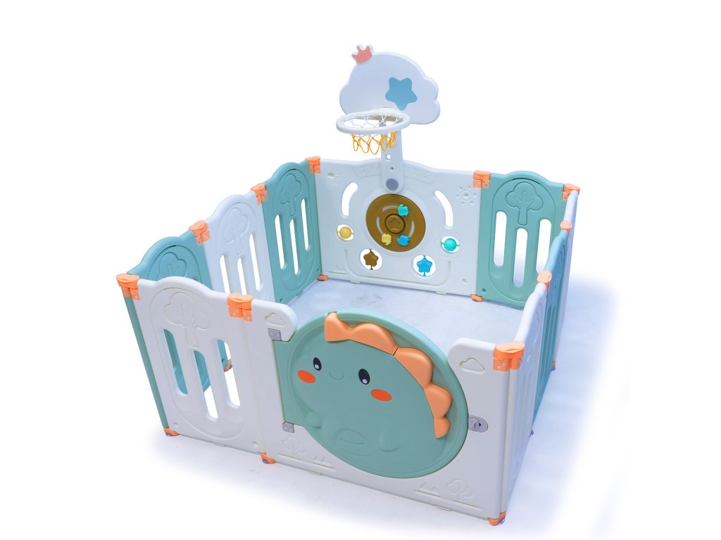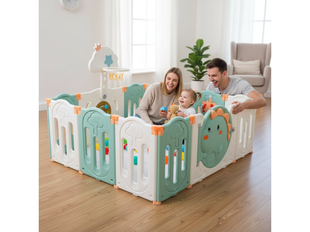 Poskytnite svojmu dieťaťu bezpečné miesto na hranie a objavovanie. Ohradka je vyrobená z vysoko kvalitného HDPE polyetylénu. Hladké, zaoblené hrany sú špeciálne navrhnuté pre bezpečnosť vašich najmenších. Dvierka sa dajú bezpečne zamknúť, čo zaručuje maximálny kľud rodičom a maximálnu bezpečnosť najmenších. Ľahké skladacie panely sú navrhnuté pre pohodlné používanie, rýchlu montáž a skladovanie. Protiskluzové prísavky zaisťujú väčšiu stabilitu. Vstavaný interaktívny panel podporuje zmyslovú hru a obsahuje basketbalový kôš a loptu, s ktorými sa vaše dieťa bude skvele zabávať a môže ich používať na trénovanie koordinácie a reflexov. Povrchy sú ideálne na každodenné použitie/ľahko sa čistia – vhodné na použitie v interiéri aj exteriéri.