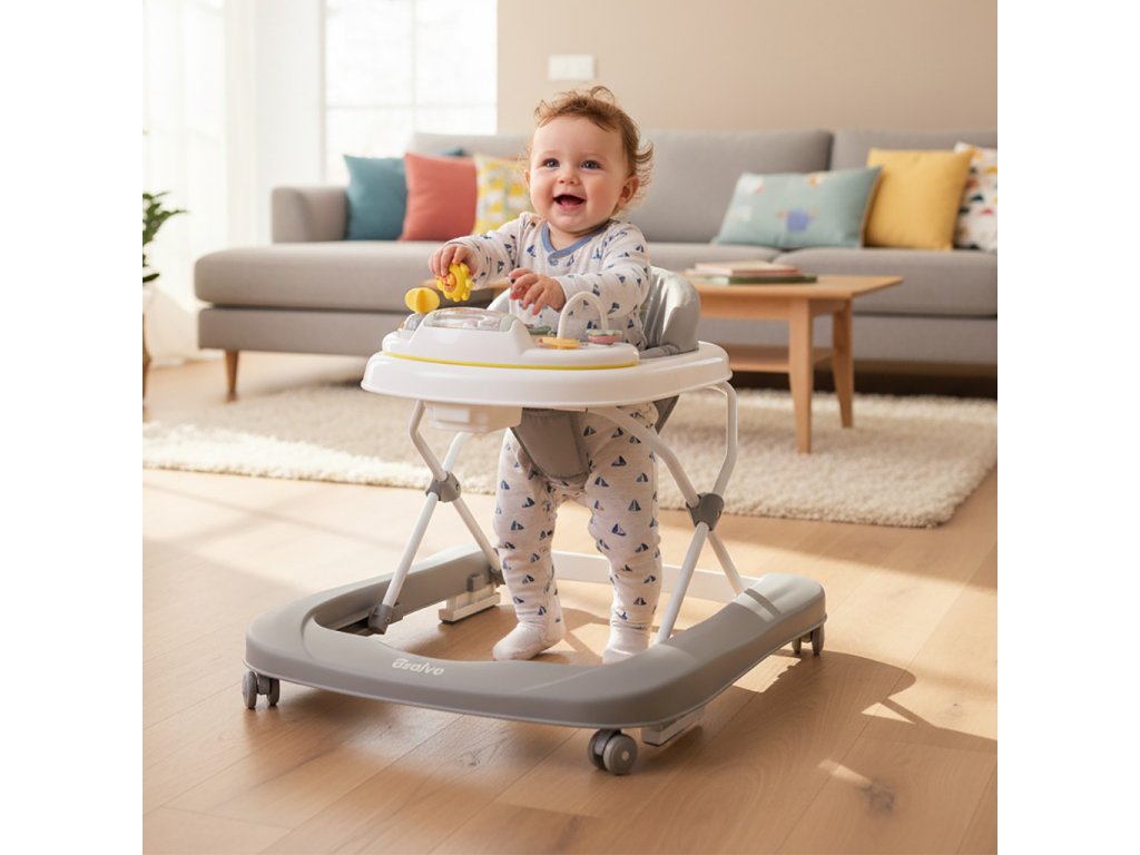Detské chodítko BABY WALKER 3 v 1 bolo navrhnuté tak, aby rástlo spolu s vaším dieťaťom. Toto multifunkčné chodítko ponúka 3 výškové polohy na nastavenie sedadla, vďaka čomu je ideálne pre deti od 6 do 18 mesiacov. Odnímateľný, polstrovaný poťah pre pohodlné sedenie a ľahkú údržbu. Interaktívny hrací pultík so zvukmi zabaví vaše dieťa a po odstránení sa stane praktickým jedálenským stolíkom na ďalšie použitie. Vyrobený s ohľadom na bezpečnosť, je vybavený protiskluzovými zarážkami, kolieskami s nastaviteľnou rýchlosťou a protiskluzovou ochranou, aby podporoval pohyb vášho dieťaťa s maximálnou stabilitou a istotou. Keď sa hra skončí, chodítko sa dá ľahko zložiť do kompaktnej veľkosti – vďaka svojmu dômyselnému skladacému dizajnu nezaberá veľa miesta, keď je zložené – ideálne pre moderné rodiny, ktoré potrebujú ušetriť miesto. Zadná tyč sa dá odstrániť, čím sa z klasického chodítka stane chodítko na aktivity, ktoré podporuje prvé kroky vášho dieťaťa.