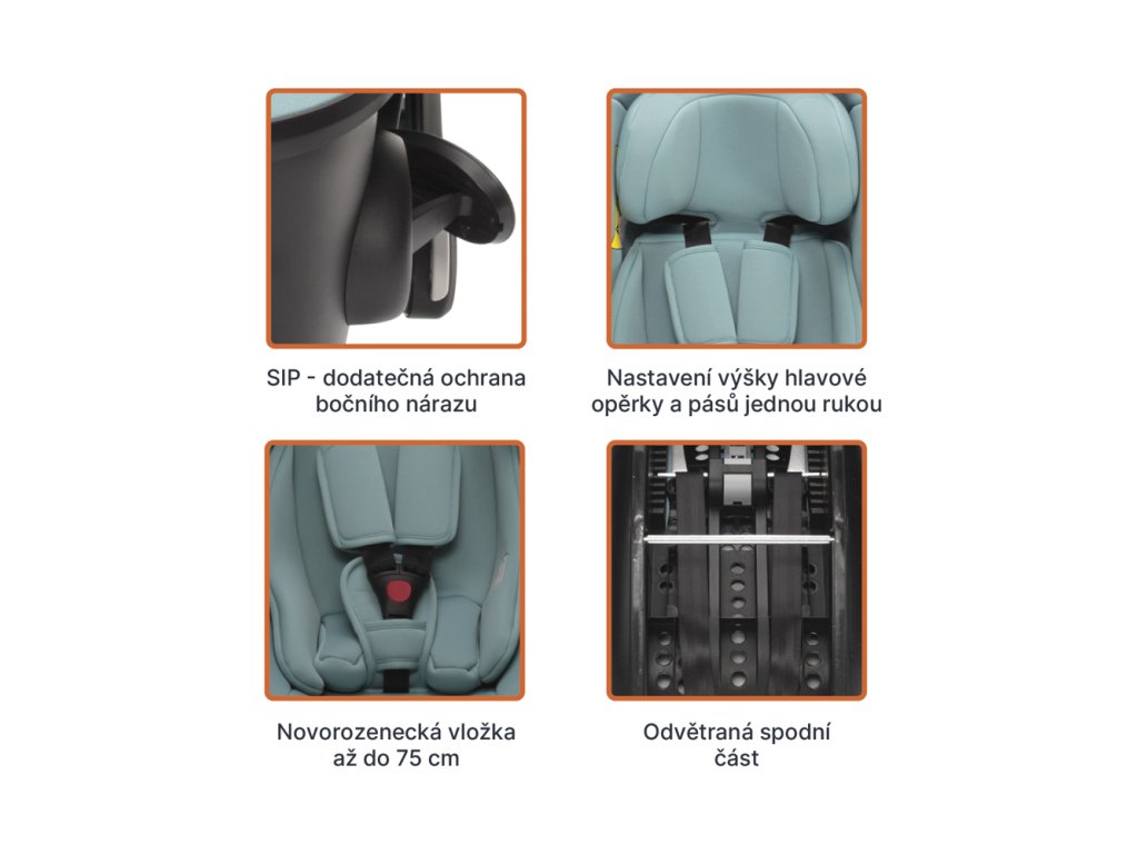 vám uľahčia upínanie dieťaťa do autosedačky a jednoducho nastaviteľná hlavová