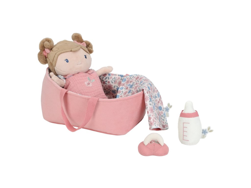 Nežná plyšová bábika Rosa sa chce maznať a túliť a vďaka praktickému košíku na spanie si ju môžete vziať kamkoľvek so sebou. Starostlivosť o také bábätko dá zabrať, a deti sa tak hravou formou učia zodpovednosti. Rosu treba pravidelne nakŕmiť alebo jej dať cumlík. Na spanie je potrebné Rosu uložiť do spacieho vaku a prikryť dekou, aby jej nebola zima.