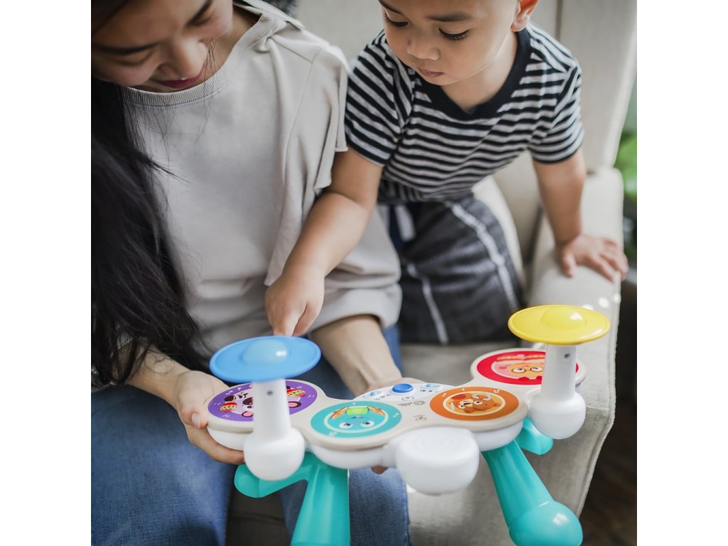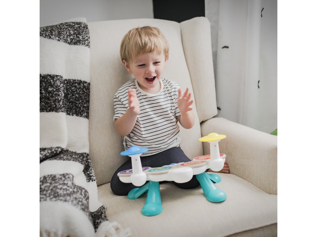 Chcete aby sa vaše deti naučili hrať spolu v zhode? Together in Tune Drums™ je hudobná hračka pre batoľatá a dojčatá, ktorá im umožňuje hrať na bubny samostatne alebo spolu so súrodencami a priateľmi. Bezdrôtovo sa pripája k ostatným nástrojom z kolekcie Together in Tune™ v dosahu a automaticky sa páruje, čím vytvára nádhernú hudbu, ktorú si mama a otec užijú rovnako ako ich deti. Bezpečné bezdrôtové spojenie medzi bicou súpravou, klavírom a gitarou funguje ako vysielačka prostredníctvom rádiových vĺn. Táto súprava bubnov, ktorá vznikla v spolupráci medzi Hape™ a Baby Einstein™, je bezpečná pre deti a podporuje rozvoj jemných motorických zručností. Technológia Magic Touch™ spája trvanlivosť a hodnotu klasickej drevenej hračky s najnovšou technológiou hudobných hračiek súčasnosti. Dokonca aj najjemnejšie poklepanie na maľované bubnové plochy vydáva skutočné zvuky bubna. Vďaka 4 režimom (Discover Mode - Objav; Perform Mode - Predveď; Playful Mode – Zabav sa; Band Mode - Kapela) a 10 populárnym melódiám, dáva táto hračka dieťaťu možnosť vytvárať si vlastné rytmy, vrstviť melódie ale aj vytvárať jednoduché zvuky, a tak vytvárať svoje vlastné pesničky. Ak hľadáte hudobnú hračku ako darček na oslavu bábätka, alebo na prvé narodeniny, táto je tá správna. Drevený dizajn bez gombíkov uľahčuje čistenie bubnovej súpravy. Zahŕňa ovládanie hlasitosti Vypnúť/Nízka/Vysoká. Vhodné pre batoľatá a deti od 12 mesiacov. Vlastnosti: - Podnecuje spoločné hranie a spoluprácu – Bábätko môže hrať na bubny samo, alebo spolu s priateľmi a súrodencami vďaka bezdrôtovému pripojeniu k iným nástrojom z rady Together in Tune™ Connected Magic Touch™ v dosahu. - 4 hudobné režimy – Discover Mode (prehrávanie populárnych melódií a vytváranie nových rytmov); Perform Mode (vrstvové melódie); Playful Mode (pridajte jednoduché zvuky); a režim kapely (hranie spolu s priateľmi a rodinou) - Ocenená technológia Magic Touch™ – Trvanlivá a hodnotná klasická drevená hračka, povýšená pomocou najnovších technológií. Dokonca aj najjemnejšie poklepanie na maľované bubnové plochy vydáva skutočné zvuky bubna. - 10 populárnych melódií – Bábätko si môže precvičiť a nakoniec zvládnuť všetkých 10 pesničiek. Ovládanie hlasitosti Vypnúť/Nízka/Vysoká poteší najväčších fanúšikov bábätka (mamu a otca). - Bezpečný a ľahko čistiteľný povrch – nástroje Together in Tune™ sa pripájajú jednoducho, bezpečne a bezdrôtovo prostredníctvom rádiových vĺn. Drevený dizajn bez gombíkov uľahčuje čistenie bubnovej súpravy. - Vhodné pre deti od 12 mesiacov. - Vyžaduje 3 batérie AA, ktoré nie sú súčasťou balenia. Rozmery (V x Š x D): 20,07 x 38,1 x 23,11 cm Hmotnosť: 0,81 kg Adresa dodávateľa: KIDS2 EUROPE BV 5 Keizersgracht 287, 1016 ED Amsterdam, Netherlands; +31 20 241 0934Dodatočné parametre