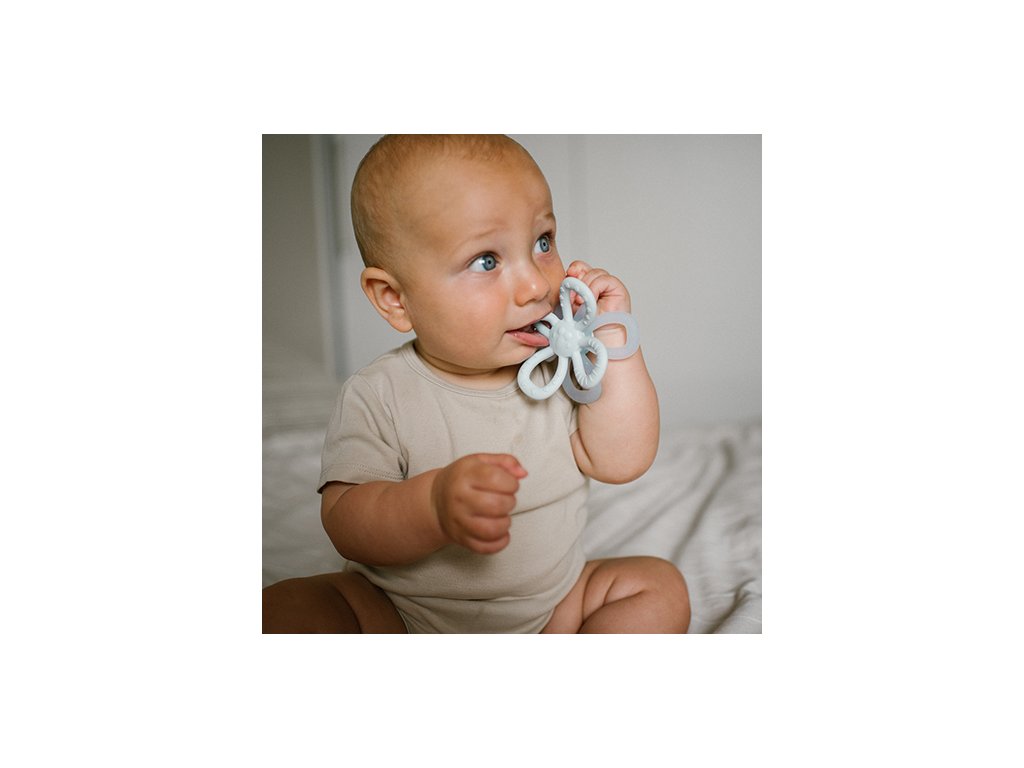 Množstvo funkcií, ktoré hryzačka v tvare kvetu má, pomáha dieťaťu v náročnom období prerezávania zúbkov. - Príručná veľkosť - Ergonomický dizajn bol prispôsobený malým ručičkám Vášho dieťatka. Výčnelok pozdĺž povrchu hryzačky jemne trie ďasná, čím pomáha bábätku objavovať rôzne textúry mäkkého silikónového materiálu. - Úľava od bolesti ďasien - hryzačka znižuje bolesť ďasien a pocit nepohodlia, ktoré sprevádzajú obdobie prerezávania zúbkov. Jemne šúcha podráždené miesta a poskytuje úľavu. - Rozvoj zmyslov a motorických schopností - pomáha bábätku zlepšiť úchop a jemnú motoriku, stimuluje hmat vďaka rôznym textúram a na dotyk príjemnému materiálu. Bezpečnostné informácie Pred prvým použitím výrobok obarte vriacou vodou (nevarte!) a osušte. Pre každodennú údržbu odporúčame umývať v teplej vode s detským mydlom. Po umytí dôkladne opláchnite a osušte. Odstráňte z hračky všetky prvky, ktoré môžu byť pre dieťa nebezpečné. Pred každým darovaním hračky dieťaťu skontrolujte jej kvalitu. Iba nepoškodená hračka zaručí vášmu dieťaťu bezpečné používanie. Hračku zlikvidujte hneď, ako spozorujete prvé známky poškodenia. Odporúča sa hrať pod dohľadom dospelej osoby. Hračka spĺňa normu EN 71. Odporúčame, aby ste si obal odložili pre referenciu. Balenie uchovávajte mimo dosahu detí. Obal a upevňovacie prvky nie sú hračkou a môžu predstavovať zdravotné riziko pre dieťa. Technické parametre: - Materiál - bezpečný silikón - Hmotnosť - 38 g - Rozmer - 9 cm x 9 cm - Odporúčaný vek - od 0 mesiacov Dodávateľ: Babyono sp. z o.o., Kowalewicka 13, 60–002 Poznań, Poland. +48 61 83 90 520, info@babyono.pl, www.babyono.comDodatočné parametre