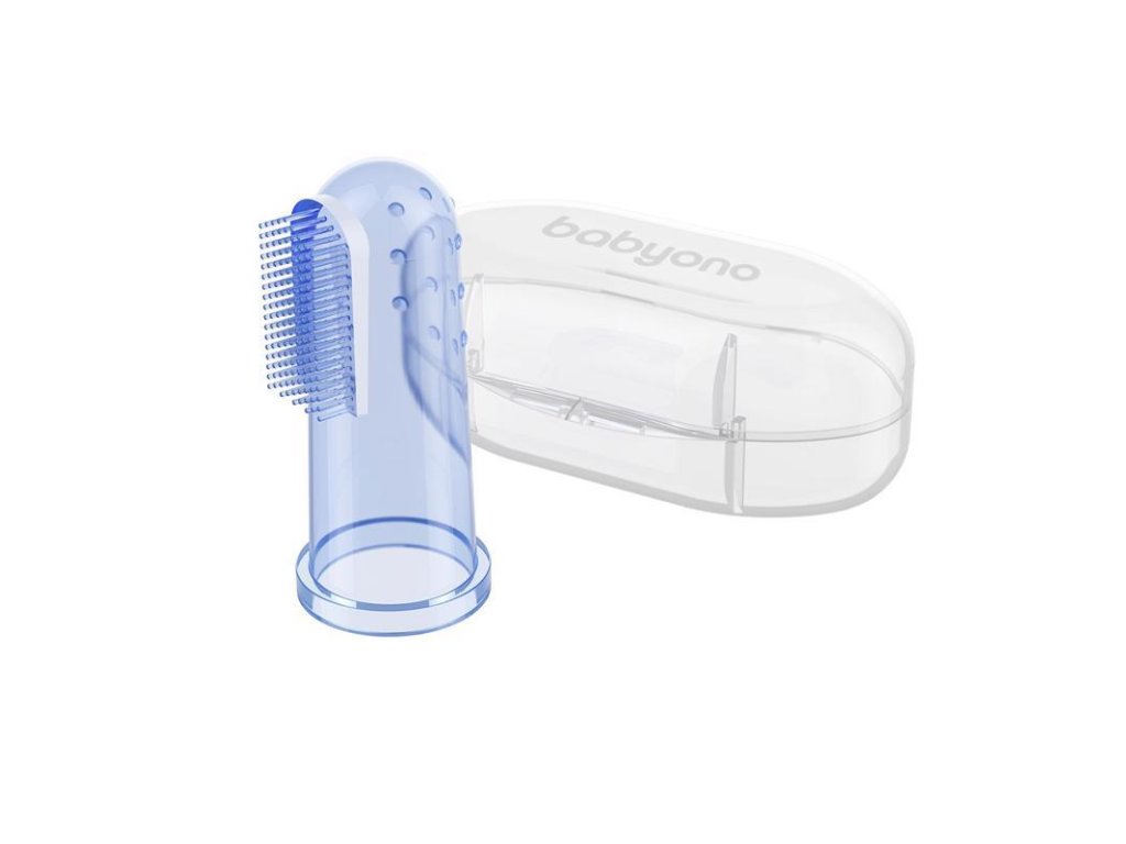 BABYONO Kefka zubná prstová s puzdrom modrá
