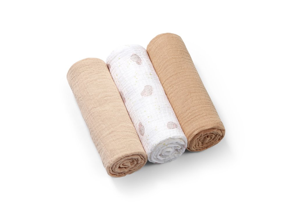 BABYONO Plienky mušelínové Super Soft 3 ks, Beige 70 x 70 cm