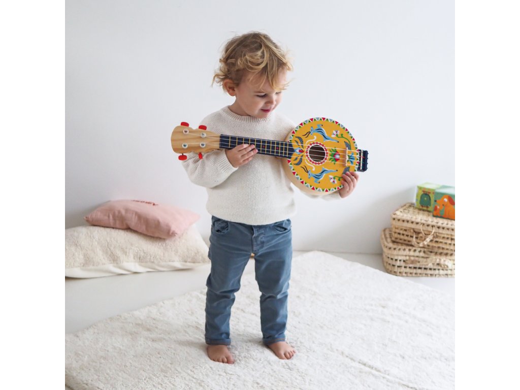 Banjo Animambo Prvý strunový nástroj: 4 strún, ktoré môžeš brnkať ako „naozaj“Banjo Animambo je detský hudobný nástroj v dizajne Animambo. Má 4 strún a veľkosť prispôsobenú detským rukám, takže sa na ňom dá pohodlne hrať doma aj na cestách.Deti si prirodzene skúšajú rytmus, brnkanie aj prvé jednoduché melódie – a pritom rozvíjajú koordináciu a trpezlivosť.Rýchly prehľad odporúčaný vek: od 3 rokov rozvíja: hudobné cítenie, rytmus, koordináciu oko–ruka, jemnú motoriku v balení: 1× hudobný nástrojPrečo si to deti zamilujú detská veľkosť – ľahšie držanie a pohodlné brnkanie struny vydávajú reálny zvuk, ktorý motivuje hrať ďalej podporuje pravidelný tréning a tvorivé „muzicírovanie“ krásny dizajn – skvelý darček pre malých hudobníkovObsah balenia 1× banjoTechnické parametre materiál: drevo, kov, plast počet strún: 4 rozmery: 53 × 20 × 5 cmDodatočné parametre