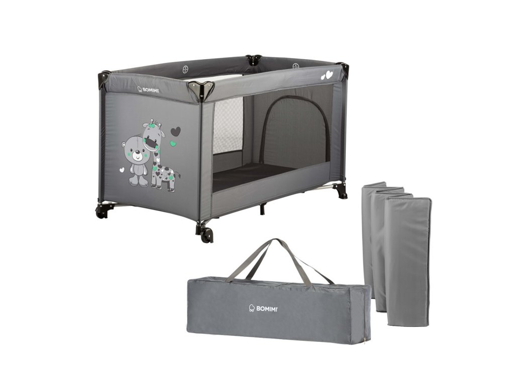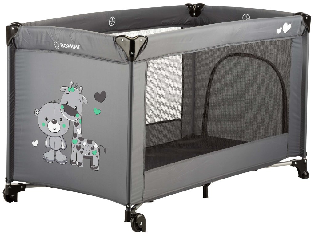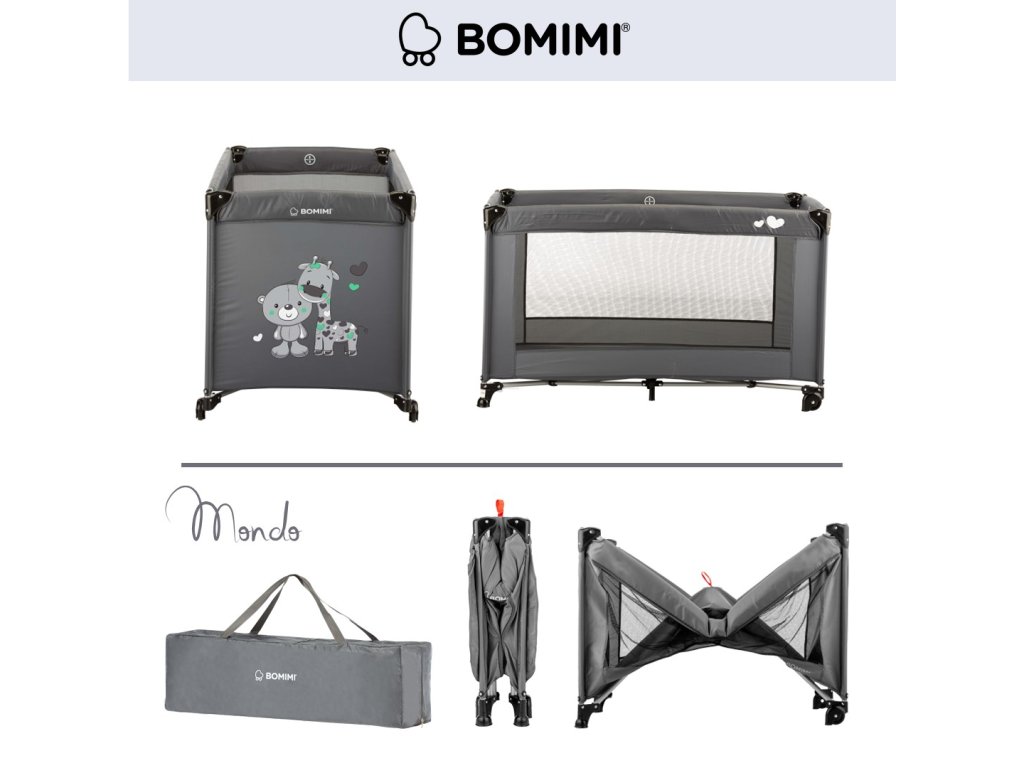 Bomimi MONDO cestovná postieľka giraffe&bear, anthracite