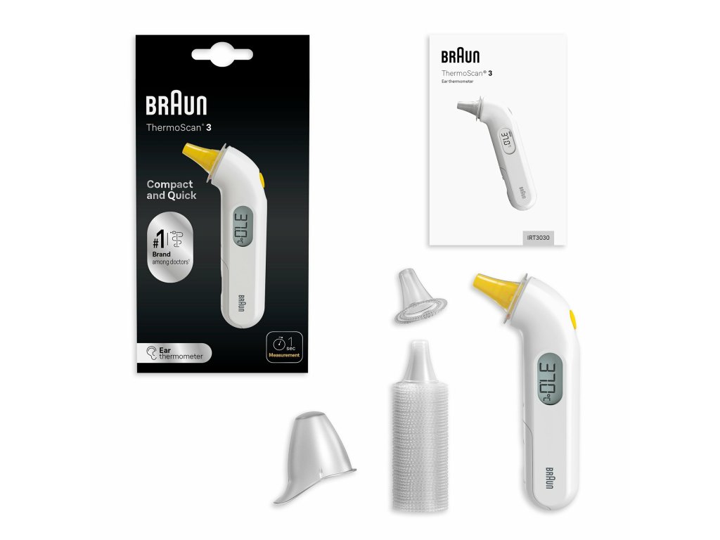 BRAUN ThermoScan 3 IRT3030 je spoľahlivý a praktický ušný teplomer, ktorý je ideálny pre rodičov, ktorí hľadajú rýchly, presný a bezpečný spôsob merania teploty svojich detí.