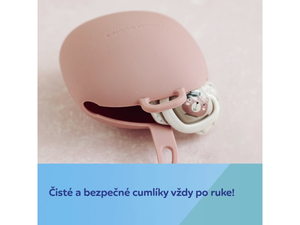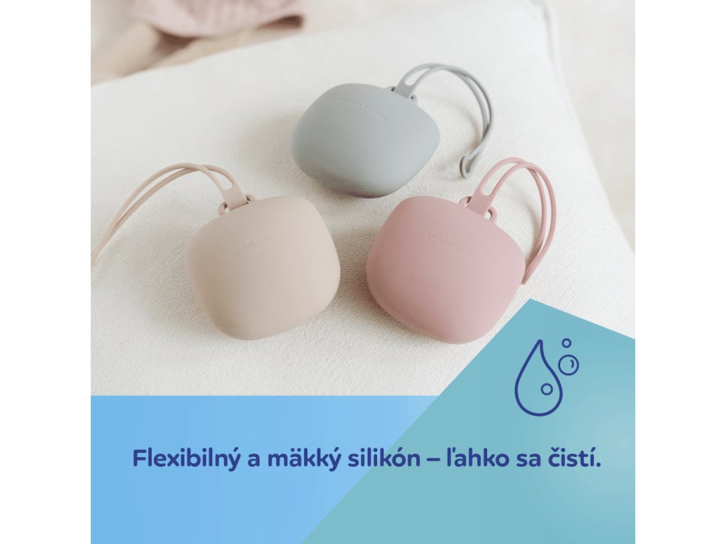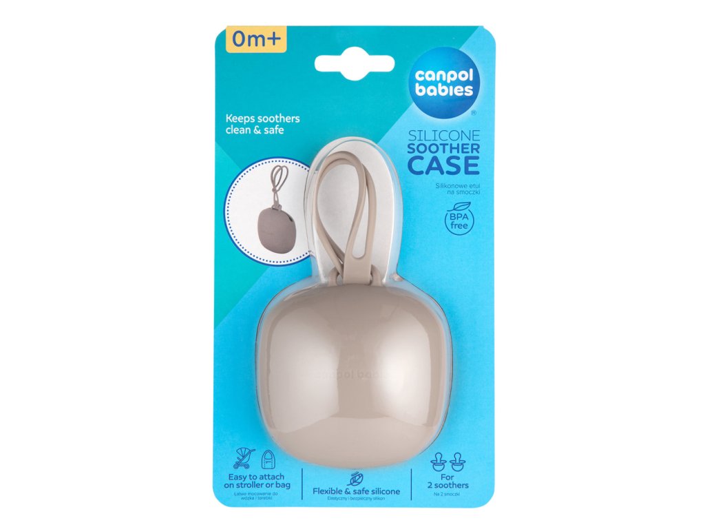 Silikónové puzdro na cumlík ochráni obľúbený cumlík vášho bábätka pri prechádzkach, cestovaní i doma. Krásny a praktický silikónový obal na cumlík pojme dva cumlíky štandardnej veľkosti, ktoré budú vždy čisté a pripravené na použitie. Puzdro má kompaktný tvar a pohodlnú praktickú rukoväť, pomocou ktorej ho je možné jednoducho pripevniť na kočiarik, postieľku alebo tašku, aby boli cumlíky vždy po ruke. Silikónové puzdro na cumlík Canpol babies je vyrobené z pružného a mäkkého silikónu, vďaka ktorému sa pohodlne používa a jednoducho sa čistí. Minimalistický design sa hodí do kabelky každej mamičky.