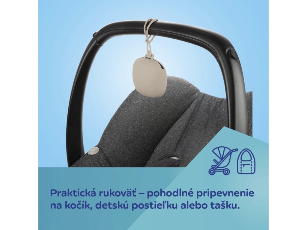 Pohodlné a praktické uchytenie – jednoduché upevnenie na kočiar, postieľku alebo tašku.