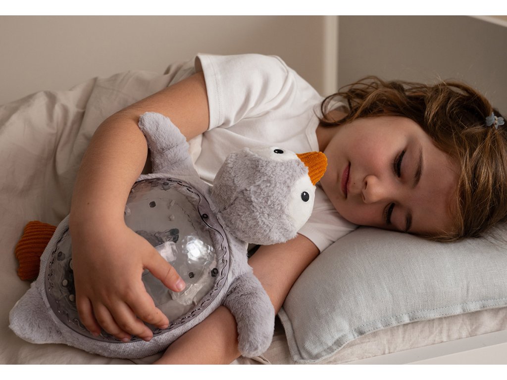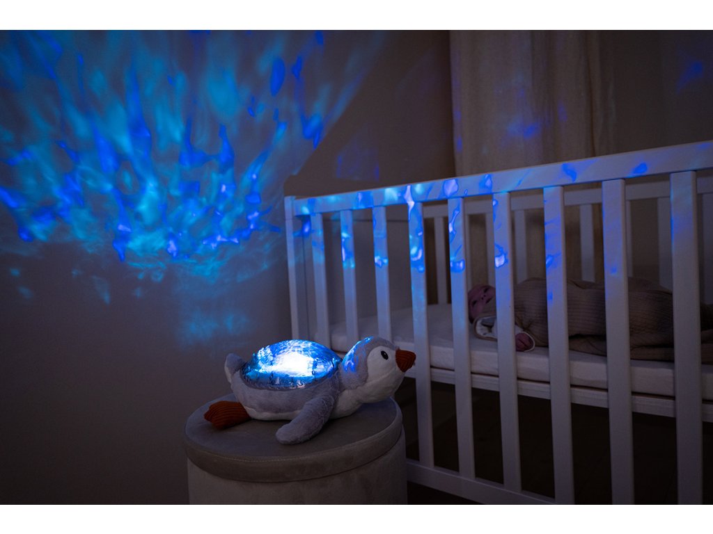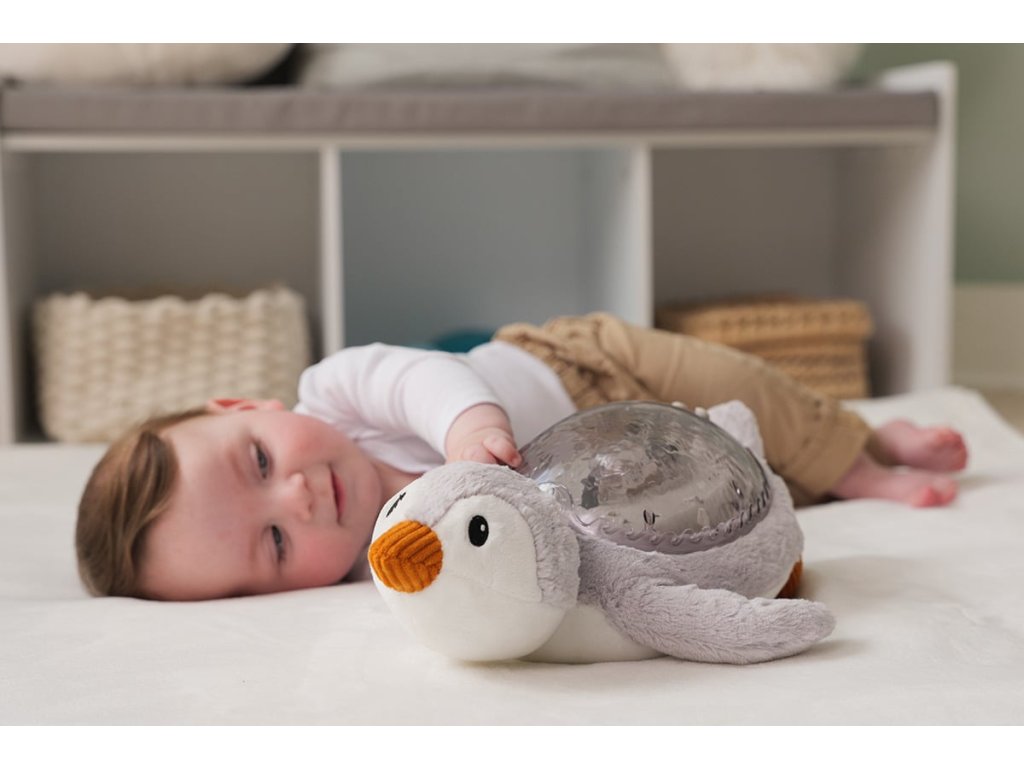 Cloud b® Tranquil Penguin™ predstavuje kombináciu nočného svetla, projektora a upokojujúcej hudby, čím vytvára magickú atmosféru pre pokojný spánok.