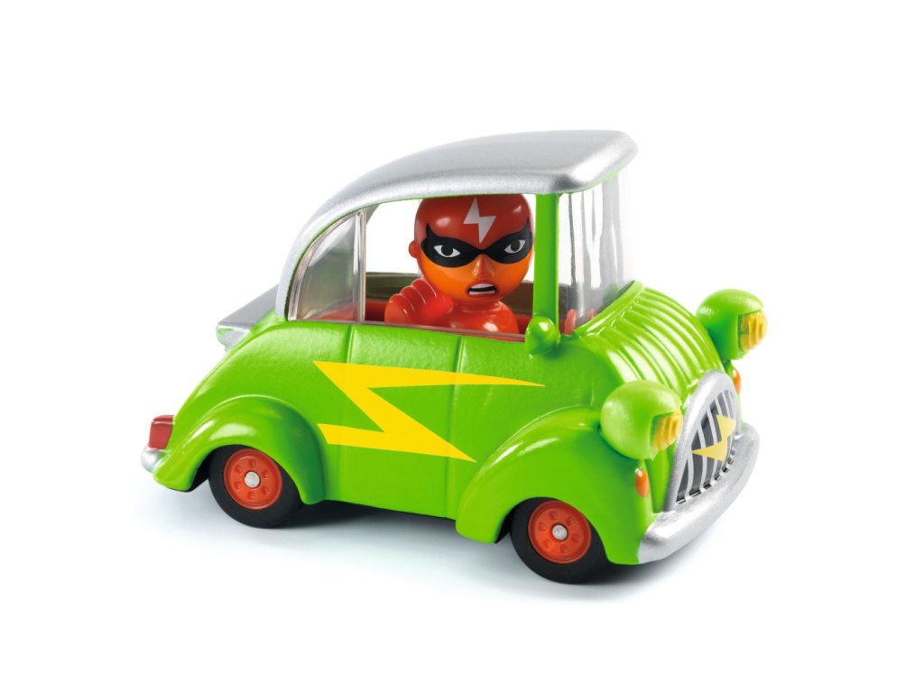 Crazy Motors Green Flash Mestské autíčko s figúrkou Zelený Blesk pozná všetky skratky a je skrátka strašne rýchle. Jeho poznávací znak je žltý blesk na zelenej karosérii. Figúrka sa nedá vybrať z auta, dá sa jej otáčať hlavou, aby mala ostatných pod dohľadom. Vlastnosti produktu Konštrukcia auta je kovová, odolná proti nárazom. S pôsobivými aj bláznivými líniami karosérie sa prelínajú nápadné detaily z plastu. Šialený dizajn dotvára metalíza. Podvozok má mäkké perovanie na hladkú jazdu a hojdavý efekt a gumené pneumatiky na úžasné manévre. Crazy Motors - Uletené autíčka je kolekcia s plnými obrátkami pre všetkých milovníkov originálnych autíčok a pretekov. Obsahuje pretekárske delá aj mestské vozidlá a doplnky, ktoré vám umožnia úplne sa ponoriť do tejto kolekcie. Vznikla z myšlienky vytvoriť pretekárov a vodičov a následne jedinečné autá, ktoré sú výrazom ich výstrednej osobnosti. Tieto zberateľské kúsky zaručene potešia! Balené v lepenkovej škatuľke s okienkom z priehľadnej fólie. Obsah: 1 autíčko + 1 figúrka (prilepená). Rozmery: 6,6 x 4,4 x 4,3 cm.Dodatočné parametre