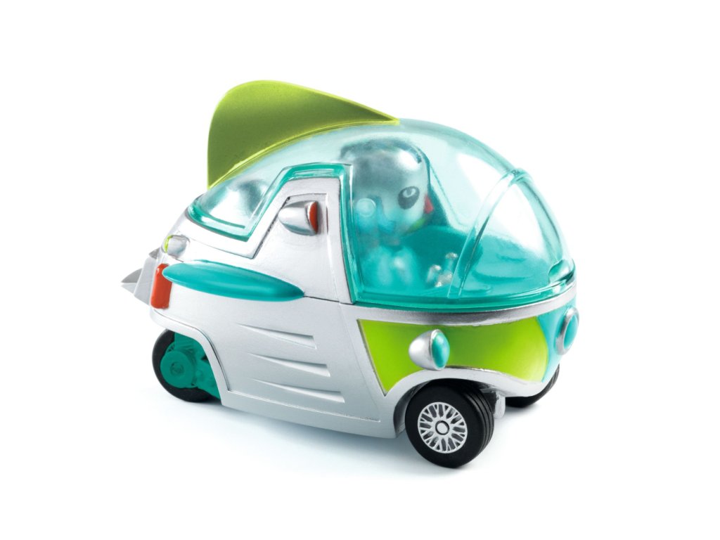 Crazy Motors Visitor X Neidentifikované jazdiace vozidlo: futuristické autíčko z inej galaxie Crazy Motors Visitor X je výnimočné kovové autíčko, ktoré vyzerá, akoby práve pristálo z vesmíru. Ako UDO – neidentifikované jazdiace vozidlo vnáša do hry poriadnu dávku fantázie: mimozemský štýl, výrazné detaily a jazda, ktorá nepozná hranice. Vďaka odpruženiu je pripravené na akčné manévre aj plynulé mestské „pristátia“. Rýchly prehľad odporúčaný vek: 3–9 rokov rozvíja: fantáziu, rozprávanie príbehov, jemnú motoriku, koordináciu oko–ruka v balení: kovové autíčko + figúrka vodiča (prilepená) Prečo si ho deti zamilujú „vesmírny“ dizajn, ktorý okamžite naštartuje dobrodružné príbehy odpruženie pre dynamickú jazdu a zábavné manévre vodič vytvorený špeciálne pre tento model kombinácia kovového tela a plastových detailov pre výrazný vzhľad metalická farba, vďaka ktorej je Visitor X neprehliadnuteľný Ako sa s tým hrá Vytvorte „pristávaciu zónu“ – mesto na podlahe, dráhu z kociek alebo vlastnú mapu. Vymyslite misiu: tichý prieskum, únik pred súpermi alebo vesmírne preteky. Jazdite, obiehajte a dopĺňajte svet Crazy Motors o nové postavy a pravidlá. Obsah balenia 1× kovové autíčko 1× figúrka vodiča (prilepená) Technické parametre materiál: kov, plast rozmery autíčka: cca 6,8 × 4,7 × 4,5 cm rozmery balenia: cca 12 × 8 × 6 cmDodatočné parametre