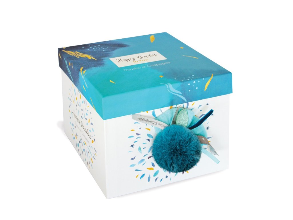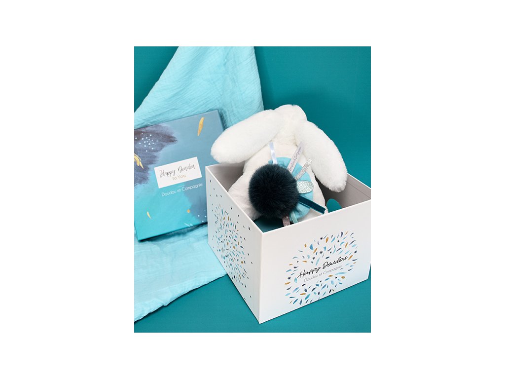 Doudou Darčeková sada - Plyšový zajačik s tmavomodrým brmbolcom 25 cm