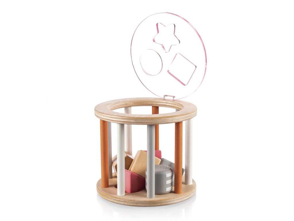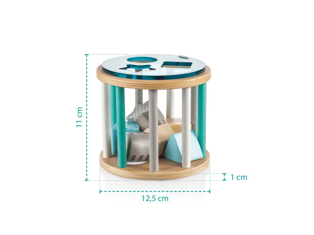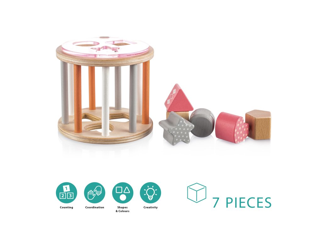 Učenie má byť hrou, a to platí aj pre rozvoj koordinácie, motoriky a učenia sa nových vecí. Drevená skladačka sa skladá zo 6 tvarov rôznych farieb, ktoré sa vkladajú do dreveného valca.