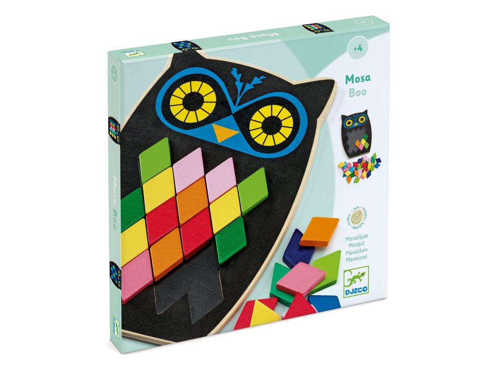 Drevená mozaiková sova Mosa Boo Mozaika pre malé ruky: farebná sova podľa predlôhDrevená mozaiková sova Mosa Boo je drevená mozaiková hra, v ktorej deti prikladajú farebné dieliky na sovu podľa predlôh. Vzniknú tak krásne „pierka“ a dieťa si precvičí farby aj priestorové usporiadanie.Rýchly prehľad odporúčaný vek: od 4 rokov téma: mozaika podľa predlôh – farebné „pierka“ pre sovu rozvíja: pozorovanie, rozlišovanie farieb, priestorové usporiadanie, jemnú motorikuPrečo si ho deti zamilujú 57 farebných dielikov – veľa možností skladania predlohy pomáhajú, no hra podporuje aj vlastnú tvorbu trénuje rozpoznávanie farieb a presné ukladanie do priestoru kompaktný formát – výborné aj na hranie pri stoleAko sa hrá Vyberte si predlohu a položte ju vedľa dosky so sovou. Prikladajte farebné dieliky na správne miesta podľa obrázka. Skúste vytvoriť aj vlastný vzor – mixujte farby a tvary.Obsah balenia 1× drevená doska so sovou 57× farebný drevený dielik (kosoštvorec) 5× obojstranná predlohaTechnické parametre materiál: drevo, kartón (z udržateľne spravovaných lesov) rozmer dosky: cca 13,5 × 20 × 1 cmDodatočné parametre