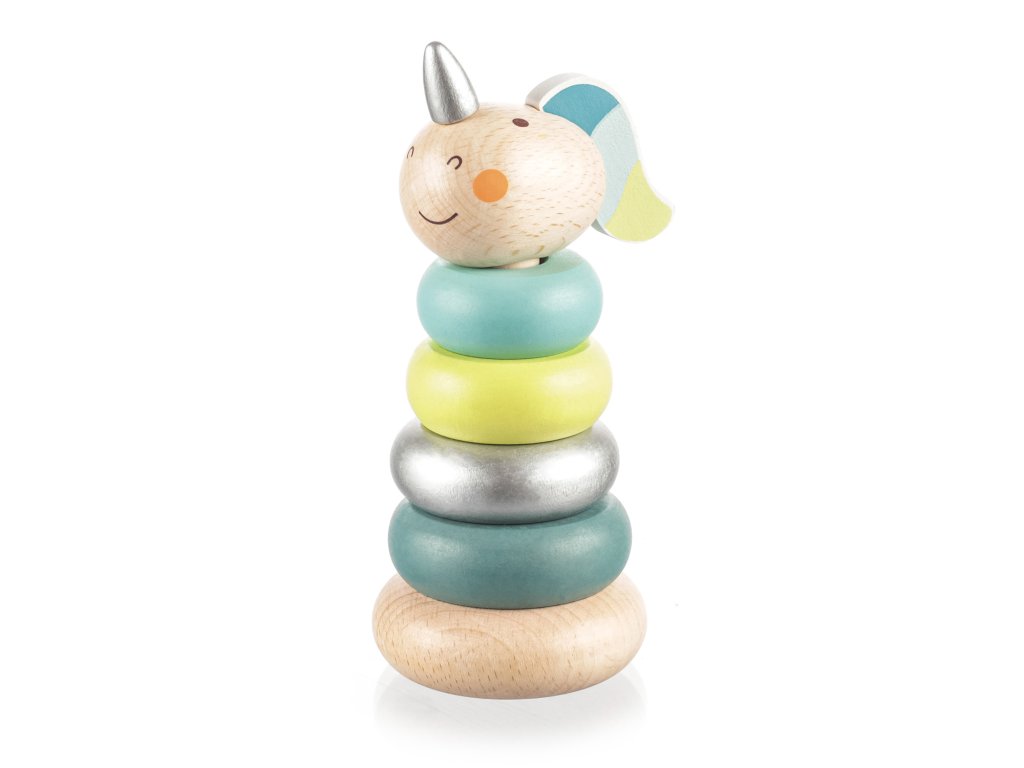Drevené jednorožcové krúžky pre deti od 16 mesiacov.