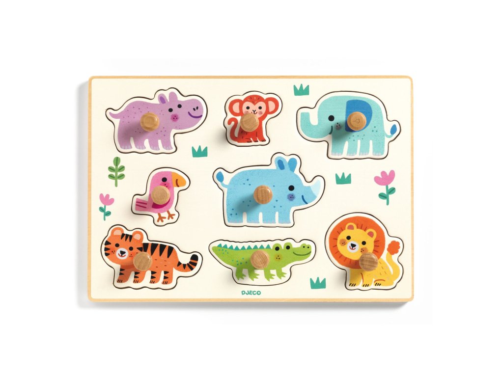 Drevené puzzle Hippo n Co Prvé puzzle pre najmenších: veľké úchopy a zvieratká zo savanyDrevené puzzle Hippo’n’Co je vkladacie drevené puzzle s 8 dielikmi a extra veľkými úchopmi. Dieťa ľahko chytí dielik, vloží ho na správne miesto a popritom spoznáva zvieratká.Rýchly prehľad odporúčaný vek: od 12 mesiacov téma: vkladacie puzzle so zvieratkami (savana) rozvíja: jemnú motoriku, koordináciu oko–ruka, rozpoznávanie tvarov a zvieratPrečo si ho deti zamilujú extra veľké úchopy – ľahké uchopenie pre malé ruky pevná drevená doska a odolné dieliky pomáha pri prvom učení sa tvarov a zvierat podporuje koordináciu a jemnú motorikuAko sa hrá Vyberte si dielik a pomenujte zvieratko na obrázku. Nájdite správny otvor podľa tvaru a vložte dielik na miesto. Skúste puzzle skladať samostatne alebo spolu – povzbudzujte dieťa otázkami.Obsah balenia 1× drevená doska 8× dielik so zvieratkom s veľkým úchopomTechnické parametre materiál: drevo (FSC®) rozmer produktu: cca 30 × 20,5 × 2,5 cm rozmer balenia: cca 31,5 × 22 × 3 cmDodatočné parametre