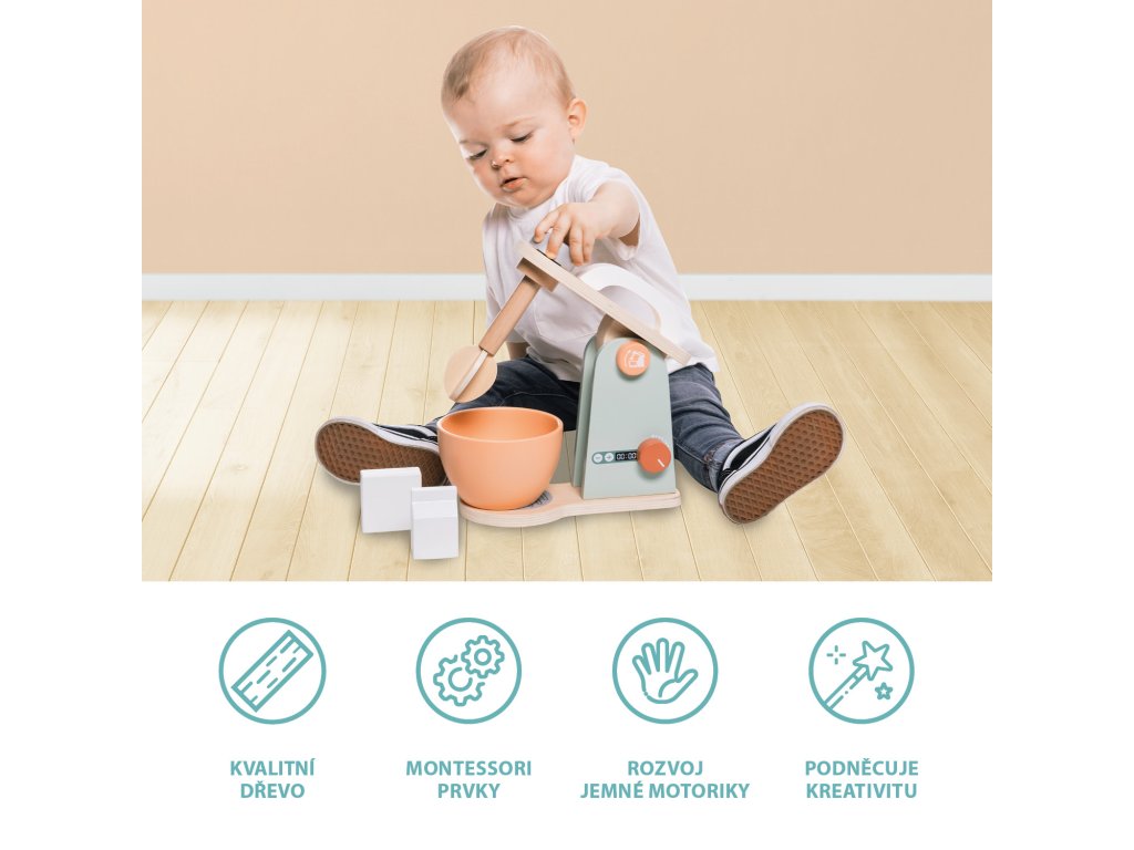 deti, ktoré chcú piecť tie najlepšie dezerty. Mixér má niekoľko tlačidiel, ktoré