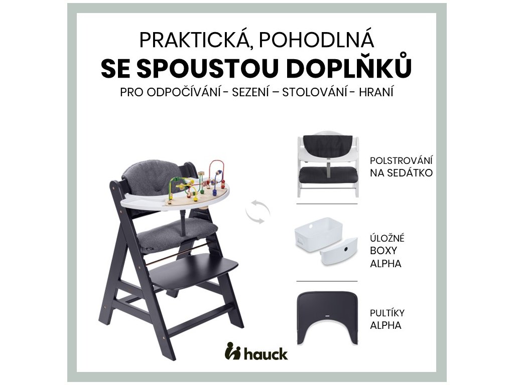 PRAKTICKÁ. POHODLNÁ. S MNOŽSTVOM DOPLNKOV (k dispozícii samostatne). // Prídavné sedadlo alebo mäkké polstrovanie zaistí vášmu dieťaťu dodatočné pohodlie. Vďaka úložným boxom udržíte vo všetkom poriadok. Pultík na jedlo alebo hracie sety sú dokonalým doplnkom pre spoločné chvíle či už počas odpočinku, hrania alebo stolovania.