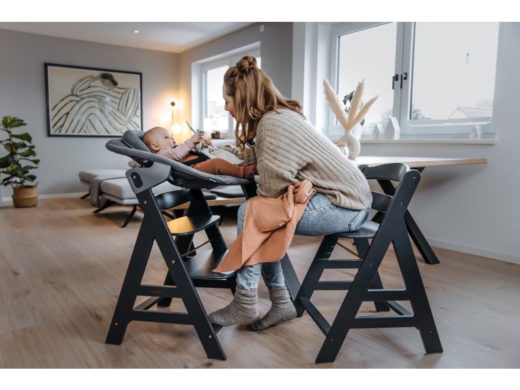 V ROVNAKEJ ÚROVNI OČÍ OD PRVÉHO DŇA // Či už si dávate pohodovú večeru alebo rýchle cappuccino, vysoká stolička Alpha+ s nástavcom pre novorodeniatka zaistí, že vám vaše maličké bude vždy na blízku a v rovnakej úrovni očí.