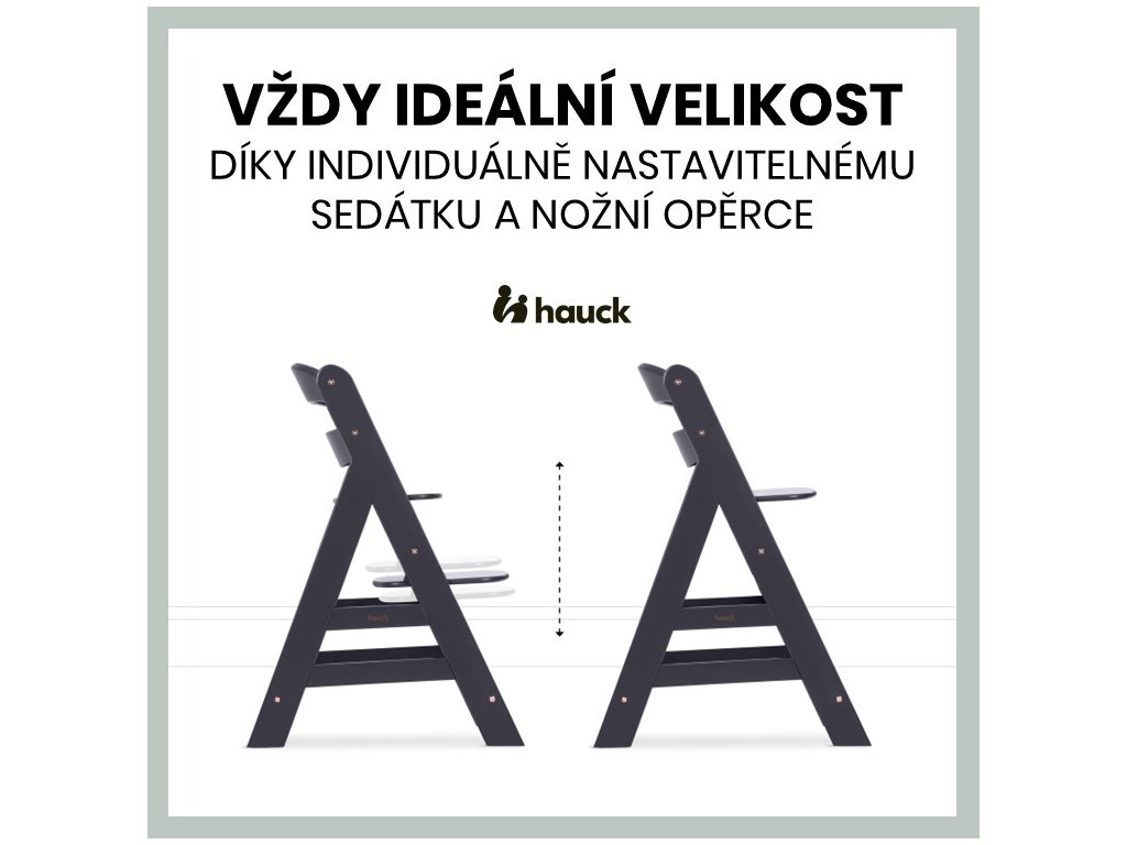 VŽDY IDEÁLNA VEĽKOSŤ // Čím je dieťa väčšie, tým stolička musí byť nižšie. Vďaka nastaviteľnému sedadlu a nožnej opierke je možné stoličku ľahko prispôsobiť výške vášho dieťaťa. Stolička tak rastie spolu s vaším dieťatkom. Rastie, ako rastú .