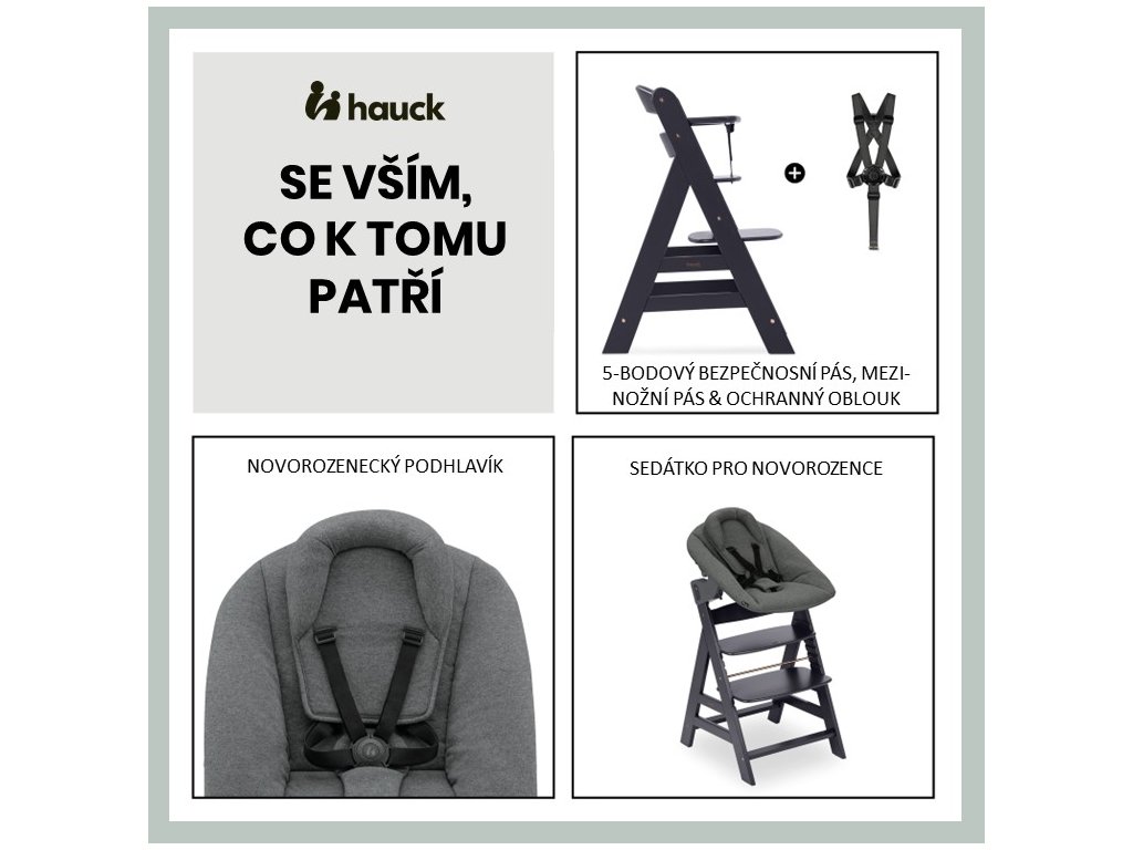 VŠETKO SÚČASŤOU BALENIA…// Súčasťou balenia je všetko, čo vaše dieťa potrebuje. Novorodenecký podhlavník, bezpečnostný medzinožný pás, 5-bodové bezpečnostné pásy a ochranný oblúk zaisťujú bezpečnosť a pohodu pri papaní.