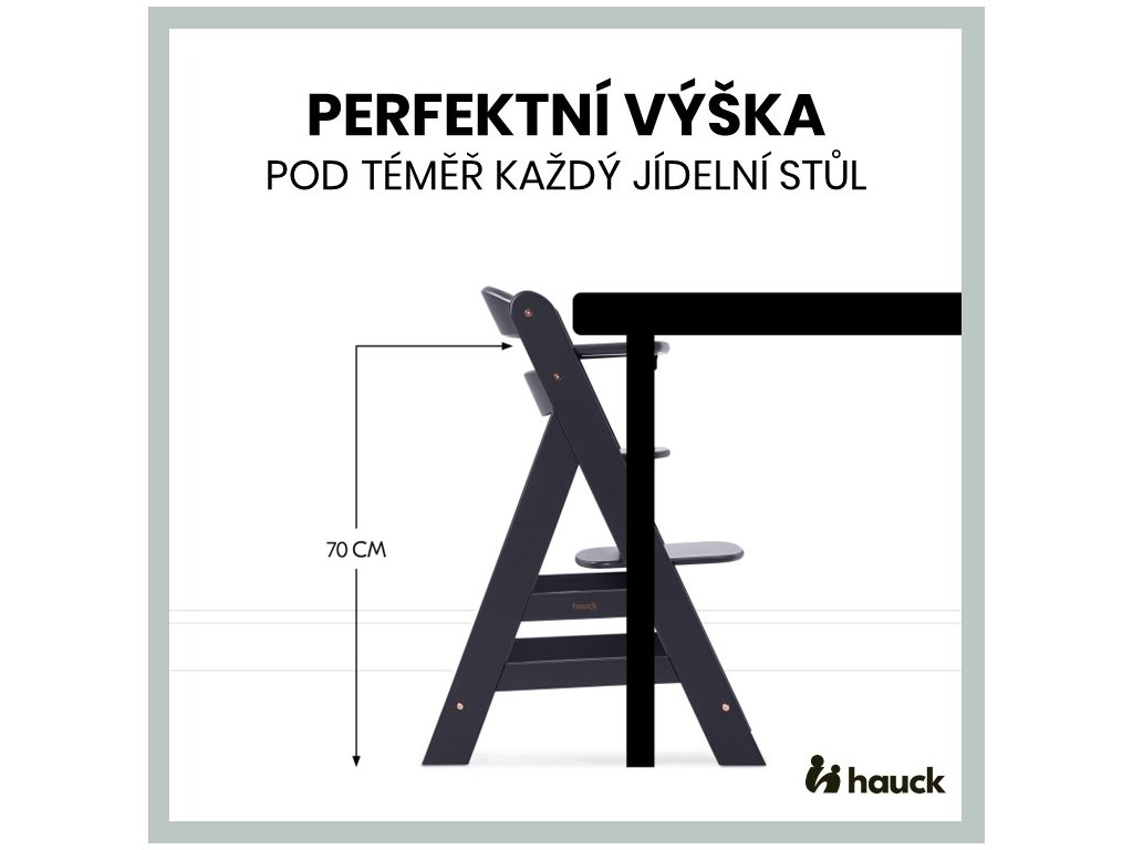 PERFEKTNE SA ZMESTÍ POD STÔL // S výškou 70 cm vrátane ochranného oblúka sa jedálenská stolička Alpha+ ľahko zmestí pod takmer každý stôl.