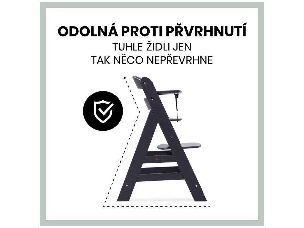 TÚTO STOLIČKU NIE JE ĽAHKÉ PREVRHNÚŤ // Deti sú stále v pohybe! Preto sme vyrobili jedálenskú stoličku Alpha+, ktorá je mimoriadne odolná voči prevrhnutiu. Aj keď sa vaše dieťa od stola odstrčí, klzáky zaistia, že stolička zostane stáť.