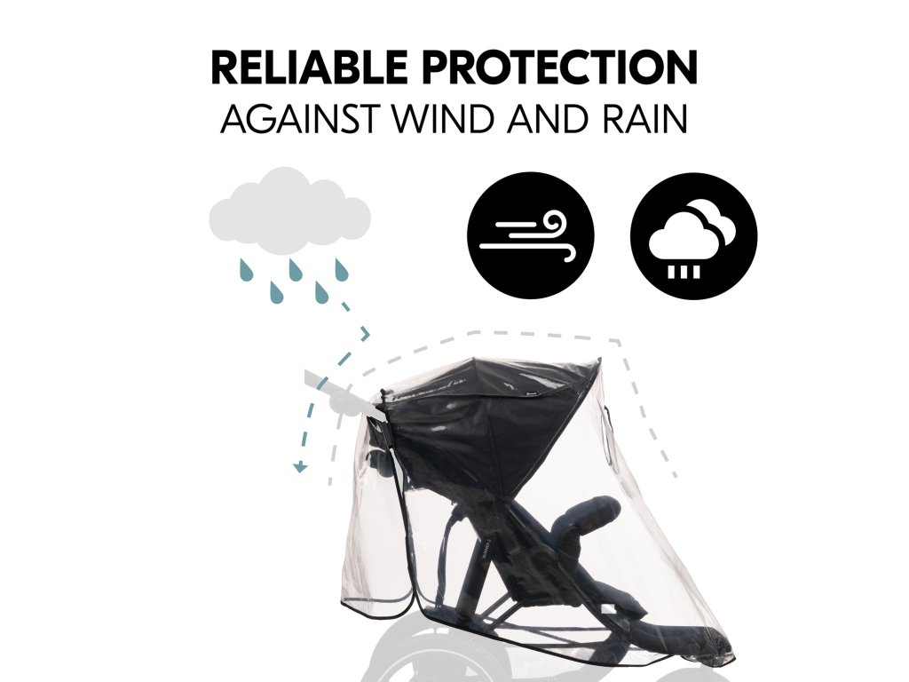 SPOĽAHLIVÁ OCHRANA PROTI VETRU A DEŠTI // Vďaka dotykovému zapínaniu zostane pláštenka bezpečne na svojom mieste počas celej cesty a vaše dieťa bude vždy v suchu.