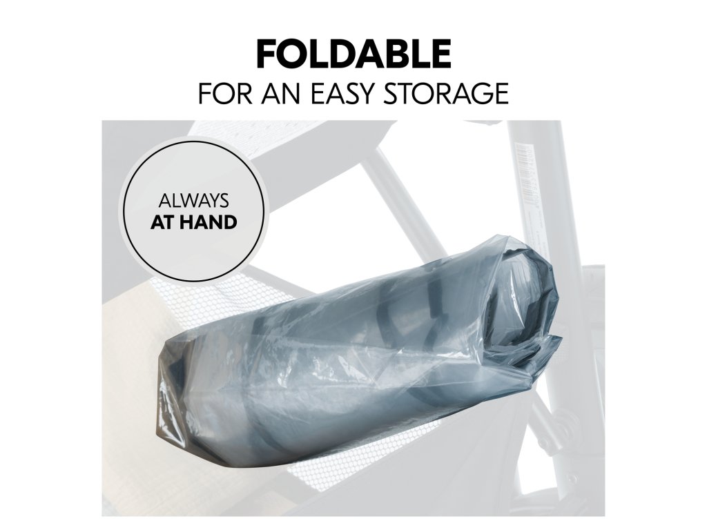 Po zložení zaberá pláštenka málo miesta // Vďaka malým rozmerom v zloženom stave môžete pláštenku ľahko uskladniť, v nákupnom košíku alebo v organizéri na kočíku. Je tak rýchlo po ruke, keď sa zmení počasie.