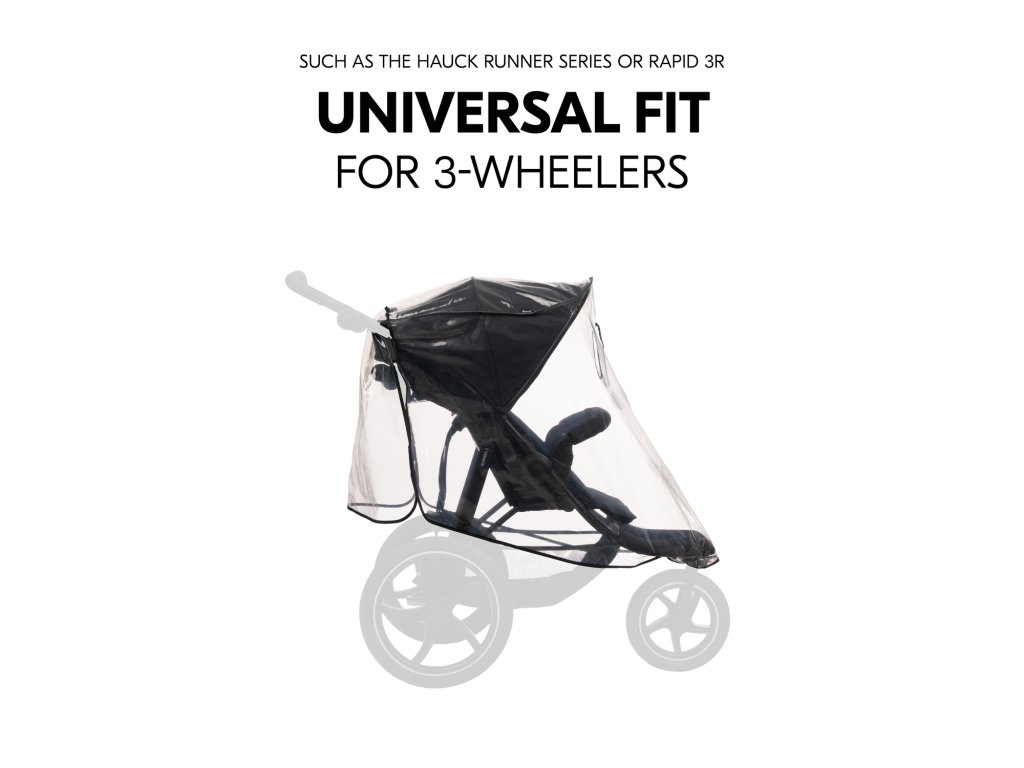 UNIVERZÁLNE POUŽITIE PRE 3-kolesOVÉ KOČÍKY // Poťah do dažďa je kompatibilný s väčšinou trojkolesových kočíkov, od spoločnosti Hauck : Runner alebo Rapid 3R.