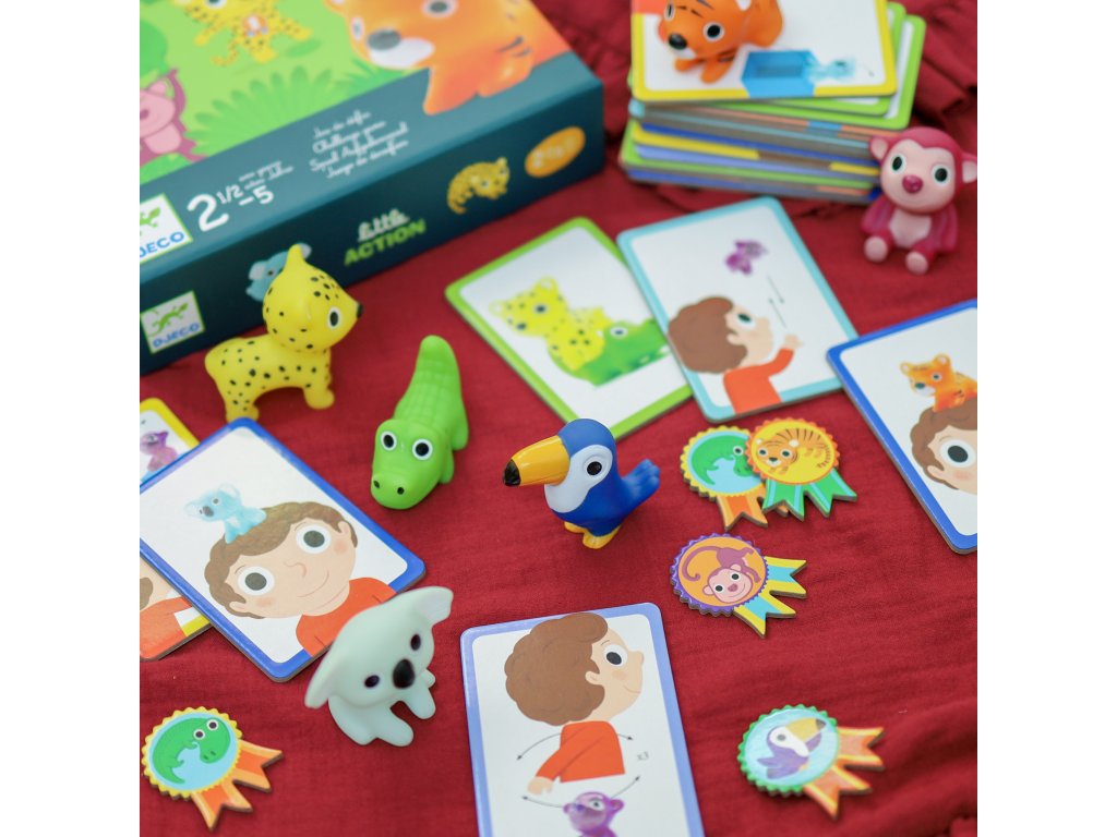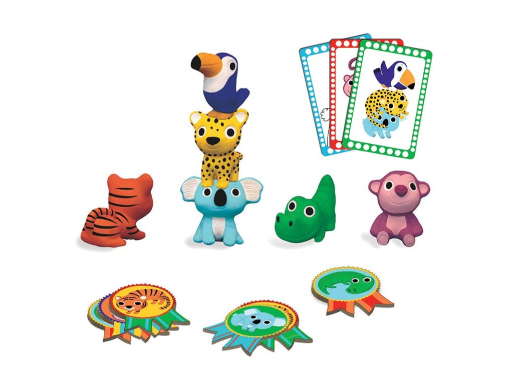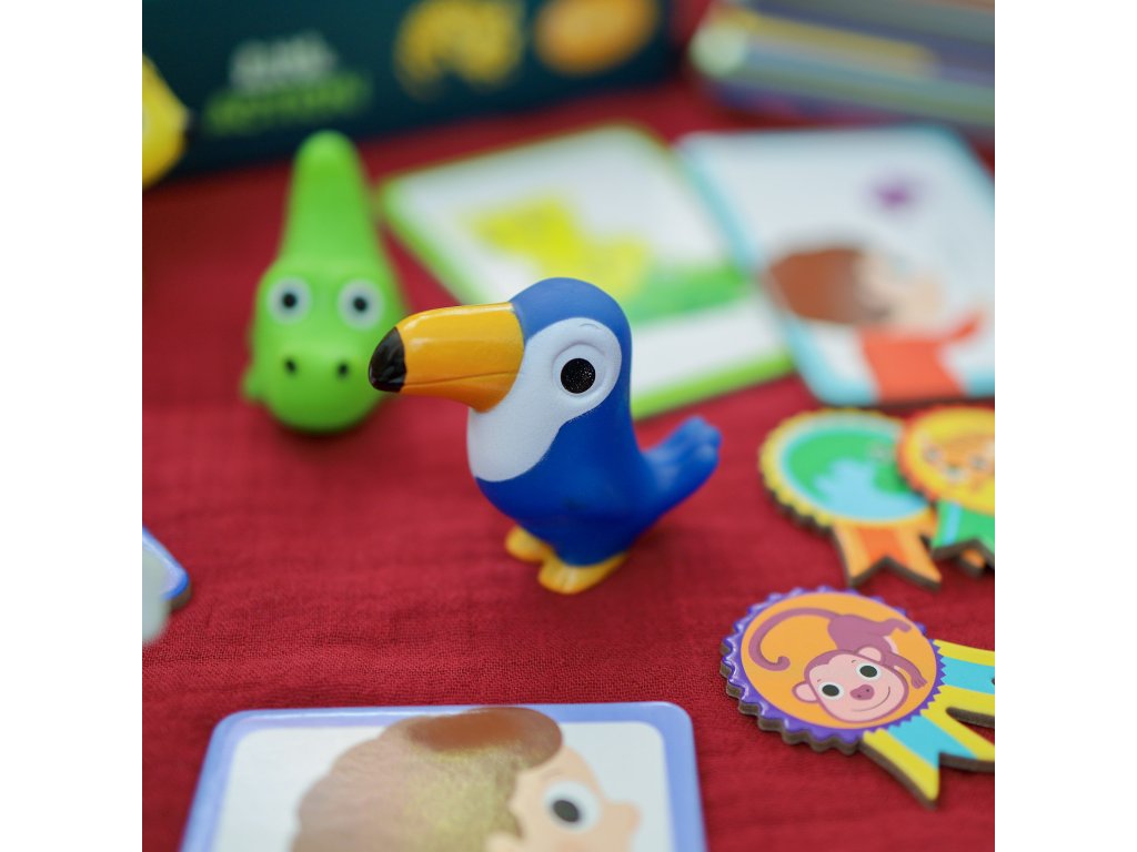 Hra Moja veselá džungľaPohybová hra plná smiechu, šikovnosti a džungľovej energieVstúpte do veselo rozdivočenej džungle, kde sa chystá veľká súťaž o medaily! Zvieratká si pripravili až 6 zábavných disciplín, v ktorých si deti preveria svoju šikovnosť, rovnováhu, obratnosť aj kreativitu. A čo je najlepšie? Pri každej úlohe sa hráči hýbu, skúšajú nové pohyby a zažijú kopu srandy.Zábavné disciplíny, ktoré rozprúdia každú hruDeti si postupne vyskúšajú úlohy, pri ktorých budú: ukladať zvieratká na seba ako vežu pohadzovať nimi alebo ich chytať balansovať so zvieratkami na hlave obiehať s nimi okolo vlastného tela a plniť ďalšie jednoduché, no veľmi zábavné výzvy Každá disciplína je ilustrovaná na kartičke, takže deti presne vedia, čo majú robiť. Hra tak prirodzene rozvíja motoriku, koordináciu pohybov a fyzickú aktivitu.Hra, ktorá podporuje pohyb aj sebavedomieMoja veselá džungľa je ideálna pre predškolákov a mladšie deti, pretože: podporuje hrubú motoriku a pohybové zručnosti učí deti trpezlivosti, sústredeniu a pružnosti posilňuje sebavedomie, keď sa úlohy podaria umožňuje kolektívnu hru, pri ktorej sa deti navzájom povzbudzujú Okrem toho, gumené zvieratká sú mäkké, bezpečné a natoľko rozkošné, že sa stanú obľúbenými kamarátmi aj mimo hry.Obsah balenia 6 milých gumených figúrok zvieratiek ilustrované kartičky s disciplínami Tu nájdete návodDodatočné parametre