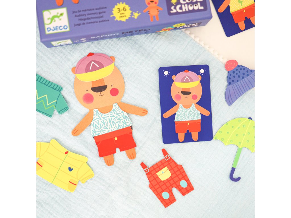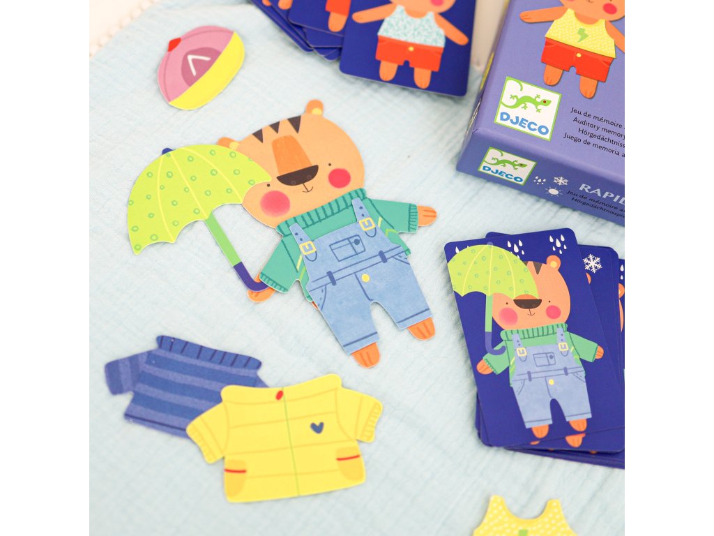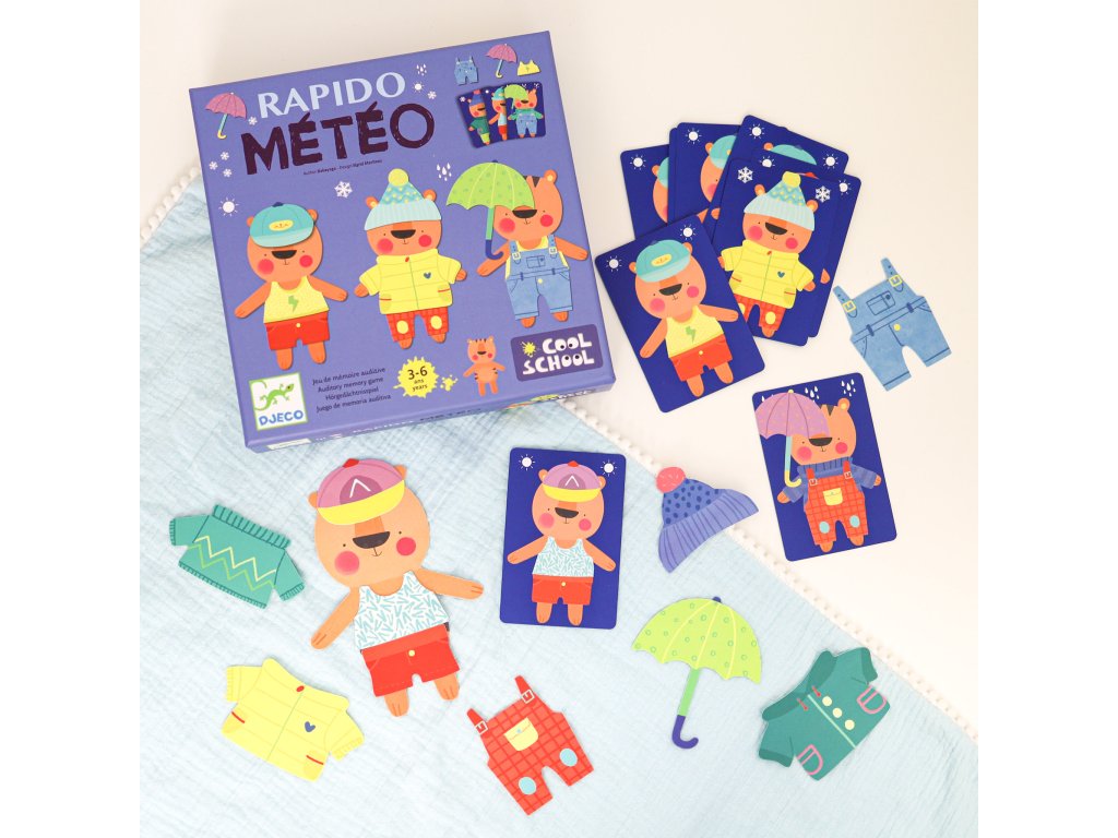 Hra Rapido MeteoZapamätaj si obrázok, popíš ho – a obleč tigra rýchlejšie ako ostatní!Rapido Meteo je svižná a veselá hra, ktorá preverí pozornosť, rýchlosť aj pamäť malých hráčov. Každé kolo začína jednoducho: jeden z hráčov si pozrie kartičku s počasiem a oblečením – a musí ostatným čo najlepšie opísať, čo má tiger mať na sebe. Ostatní hráči počúvajú, zapamätávajú si inštrukcie a rýchlo hľadajú správne kúsky oblečenia. Kto oblečie svojho tigra najrýchlejšie a najpresnejšie, získava bod!Skvelá hra na tréning pamäti, pozornosti a slovnej zásobyHra Rapido Meteo nenápadne rozvíja množstvo dôležitých schopností: sluchovú pamäť – deti si musia zapamätať niekoľko detailov naraz pozornosť a postreh – rýchle hľadanie správnych dielikov komunikačné zručnosti – opisujú počasie, farby a oblečenie logické uvažovanie – rozhodujú, čo tiger potrebuje podľa počasia rýchlu reakciu – víťazí ten, kto oblečie tigra skôr Deti sa pritom výborne zabavia, učia sa pomenúvať farby, počasie a oblečenie, a popritom si ani nevšimnú, že trénujú pamäť.Obleč tigra podľa počasia!Bude pršať? Potrebuje pršiplášť! Sneží? Bez čiapky to nepôjde! Svitlo slnko? To si tiger oblečie tričko!Každá kartička prináša nový scenár – a nikdy nevieš, čo ťa čaká.Prečo si deti hru zamilujú roztomilý tigrík a farebné oblečenie rýchla, svižná a napínavá hratelnosť jednoduché pravidlá vhodné aj pre menšie deti hra, pri ktorej sa smeje celá rodina Je to ideálna hra pre predškolákov aj mladších školákov, ktorí milujú kombináciu rýchlosti a hravého učenia. Tu nájdete návodDodatočné parametre