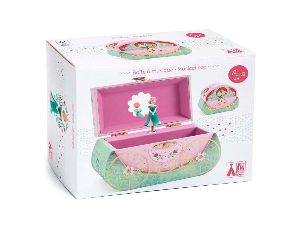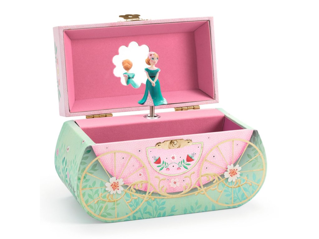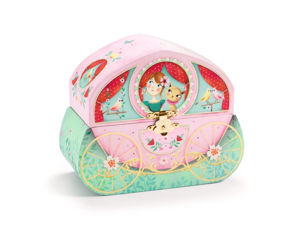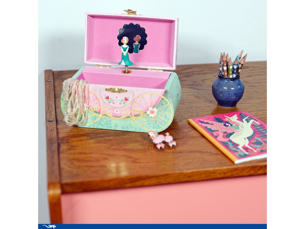 Hracia skrinka a šperkovnička Koč Šperkovnička v tvare koča: tajné poklady, zrkadlo a otočná figúrkaHracia skrinka a šperkovnička Koč je originálna šperkovnička v tvare rozprávkového koča. Po otvorení sa spustí melódia a figúrka sa začne otáčať pred tvarovaným zrkadielkom. Vnútri je príjemný zamatový povrch.Rýchly prehľad odporúčaný vek: od 4 rokov funkcia: úložný priestor + hudobný mechanizmus rozvíja: poriadkumilovnosť, estetiku, jemné rituályPrečo si ju deti zamilujú koč ako dekorácia – vyzerá nádherne na poličke zrkadielko a otočná figúrka zamatové vnútro chráni drobnosti melódia hrá približne 2,5 minútyAko sa používa Natočte mechanizmus a otvorte šperkovničku. Uložte dovnútra prstienky, gumičky či malé poklady. Po zatvorení bude všetko bezpečne uložené.Obsah balenia 1× hracia šperkovnička v tvare kočaTechnické parametre rozmer: cca 17,4 × 14,5 × 8,2 cm melódia: hrá približne 2,5 minúty materiál: drevo, papierový poťah, zamatový interiérDodatočné parametre
