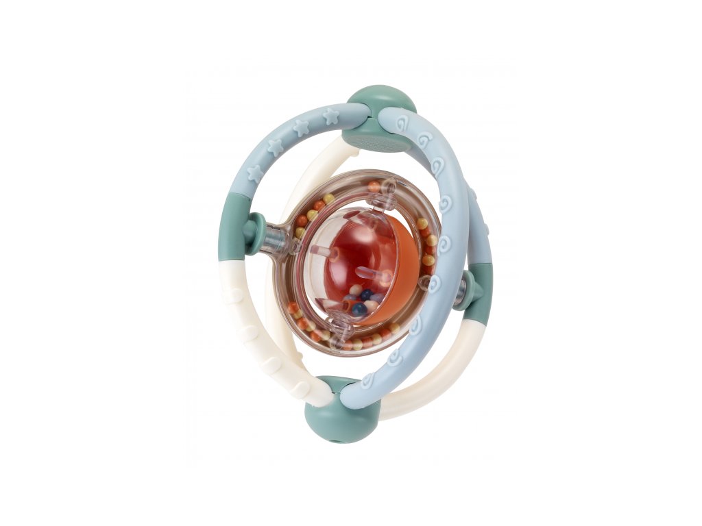 Hrkálka Infantino s rôznymi textúrami má tvar pre ľahké uchopenie a skúmanie ručičkami aj v ústach. Korálky vo vnútri priehľadného krúžku pri pohybe jemne hrkajú.