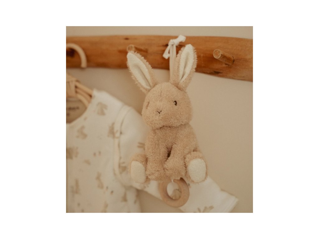 Závesný králik je súčasťou dizajnovej kolekcie hračiek a doplnkov Little Dutch Baby Bunny.