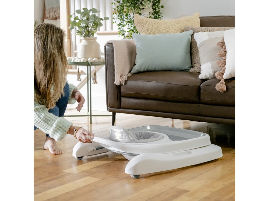 Tešíte sa na prvé krôčiky vášho dieťatka alebo už máte doma skúseného chodca? Alebo dokonca oboch? S chodítkom 3v1 Step & Sprout si užijete mnoho rodinnej zábavy, ktorá umožňuje zvládnuť kroky vášho dieťaťa v každej fáze. Tri spôsoby využitia, resp. tri spôsoby hier, robia chodítko jedinečným. Tieto tri režimy umožňujú, že chodítko bude rásť spolu s vašim dieťaťom a pomôže mu zvládnuť chôdzu v každej jeho etape. Režim aktívneho chodítka podporuje prvé kroky dieťaťa, zatiaľ čo režim tlačenia pomáha udržať dieťa pri chôdzi v pokoji. 3 odnímateľné hračky inšpirované prírodou majú prísavky na pripevnenie k iným podnosom alebo stolíkom. Chodítko sa ľahko udržiava v čistote - obsahuje veľký pultík s odnímateľnou vložkou podnosu bez BPA, ktorý je možné umývať v umývačke riadu, podložku na sedadlo možno prať v práčke a hračku jednoducho utrieť. Mäkká plyšová vložka na sedenie zabezpečí dieťatku pohodlie, zatiaľ čo pevný rám pomáha udržiavať dieťa v bezpečí. Konštrukcia chodítka zabezpečuje jednoduché skladanie, skladovanie a aj prenášanie. Bezpečnosť je posilnená gumovými kolieskami, ktoré brzdia rám. Možnosť nastavenia rámu chodítka do troch výškových polôh zabezpečuje správny vývoj vášho dieťaťa, pretože udržuje chodidlá vo vhodnej polohe. Neutrálny moderný dizajn sa bude hodiť do každého interiéru Vlastnosti: - 3 spôsoby hrania – chodítko (6-12 mesiacov), režim tlačenia (12-24+ mesiacov), pultík s odnímateľnými hračkami od 6 mesiacov - 3 režimy zabezpečia, že chodítko rastie spolu s vašim dieťaťom - 3 odnímateľné, prírodou inšpirované hračky s prísavkami pomáhajú udržať dieťa pri hre - vysoké operadlo poskytuje podporu a pohodlie pre dieťa - odnímateľný pultík s hračkami je možné použiť aj pre hry na podlahe, vysokej stoličke - jednoduché skladanie, skladovanie a aj prenášanie - sedacia časť sa dá ľahko vybrať a oprať v práčke - možnosť nastaviť rám chodítka na tri rôzne výškové polohy - ľahká údržba – pultík možno umývať v umývačke riadku, utierateľné hračky pre ľahké čistenie - chodítko je vhodné pre deti vo veku od 6m+ do 12 kg Rozmery (cm): 73,66 x 66,04 x 57,15 Adresa dodávateľa: KIDS2 EUROPE BV 5 Keizersgracht 287, 1016 ED Amsterdam, Netherlands; +31 20 241 0934Dodatočné parametre