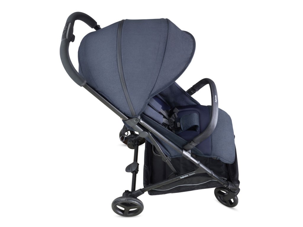 - Rozloží sa a zloží len jednou rukou a zostane stáť sám rukoväťou nahor, pre zaistenie maximálnej hygieny sa po zložení kočíka nič nedotýka zeme.