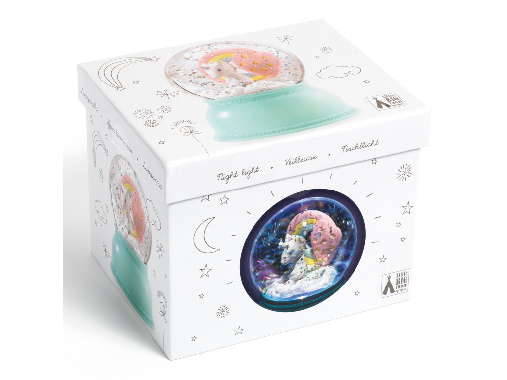 Nočné svetlo a snežítko JednorožecJemné nočné svetlo s motívom jednorožca pre detskú izbuNočné svetlo s motívom jednorožca je roztomilé a praktické nočné svetlo, ktoré prináša do detskej izby pokojnú a teplú atmosféru počas zaspávania. Tichý mechanizmus sa po 45 minútach automaticky vypne. 3 AA (tužkové) batérie nie sú súčasťou balenia.Prečo si vybrať svetlo od Djecovhodné pre deti každého vekumäkké svetlo ideálne na spaniebezpečný a stabilný dizajn bez ostrých hránvytvára príjemnú atmosféru v detskej izbeenergeticky úsporné a nenahrieva saObsah balenianočné svetloDodatočné parametre