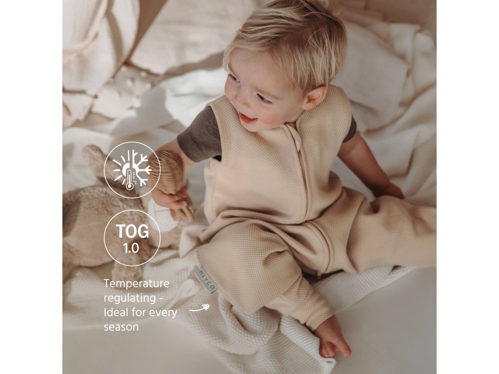 Spací pytel s nožičkami je bez podšívky vyrobený z měkké dvouvrstvé látky: uvnitř je ze 100% bavlněného žerzeje, vnější strana je z 58% bavlny, 39% polyesteru a 3% elastanu.S hodnotou TOG 1,0 je ideální pro jarní a podzimní noci. Prodyšný materiál dokonale reguluje vlhkost a zajišťuje pohodlné prostředí pro spaní, takže vaše dítě může pohodlně spát, aniž by mu bylo příliš horko nebo zima.Pro určení správné velikosti spacího pytle je důležitá výška vašeho dítěte než věk. Nikdy nepoužívejte spací pytel, pokud hlava vašeho děťátka projde otvorem na krk. Vždy se tedy ujistěte, že používáte spací pytel správné velikosti. Díky bezpečnému střihu, který těsně obepíná krk a paže, se vaše dítě může volně pohybovat a bezpečně spát. Celo propínací zip se zapíná odshora dolů, takže jezdec zipu končí dole. Tím se zabrání tomu, aby si dítě samo stáhlo zip, a zajistí se tak, že otvor pro krk vždy správně sedí. Zabrání se tak tomu, aby se dítě do svetru „zabořilo“, a prostředí pro hru a spaní je tak bezpečné a pohodlné. Velikost: 92 cm pro použití od 18 do 36 měsíců a délka cca 86 až 98 cm Lze prát v pračce při maximálně 30 stupňůNevhodné pro sušení v sušičceŽehlit při nízké teplotě Informace o výrobci MEYCO b-boo baby & lifestyle GmbHTackenweide 5446446 Emmerich am RheinGermany Phone number: +49 (0)2822 976500 https://www.meycobaby.com/E-mail: info@meycobaby.com Bezpečnostní upozorněníVýrobek není hračka. Nevystavujte blízkosti ohně. Plastový obal držte mimo dosah dítěte, hrozí nebezpečí udušení.Dodatočné parametre
