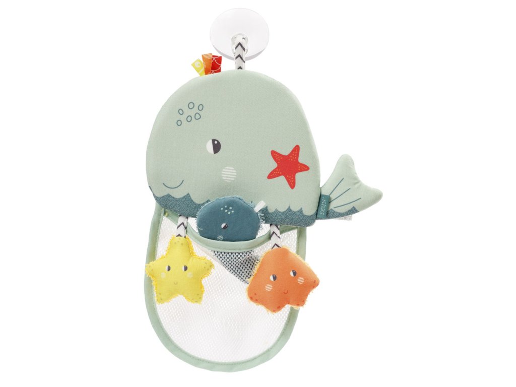 veľrybu pripevniť na stenu a menšie hračky uložiť do jej sieťky, kde vďaka