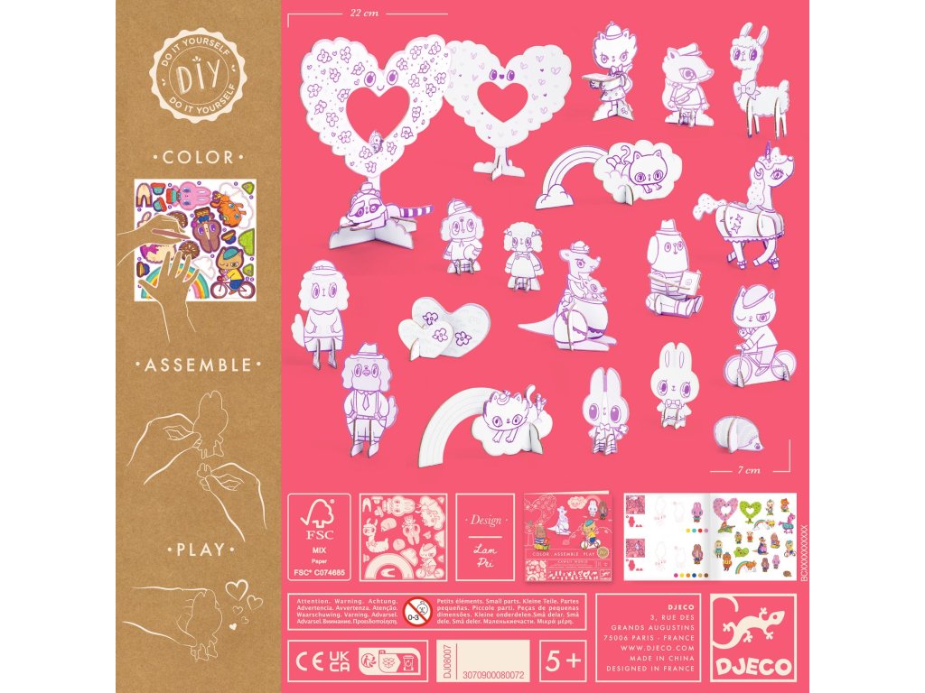 Kartónová 3D kreatívna Kawaii world Vyfarbi, poskladaj a hraj sa v 3D: kawaii postavičky, zvieratká a dekorácie bez lepidla a bez nožnícKartónová 3D kreatívna Kawaii world je tvorivá sada, v ktorej deti najprv vyfarbia pevné kartónové dieliky, potom ich vylomia a jednoducho poskladajú do 3D pomocou zárezov.Hotové prvky sa hneď menia na hračky – ideálne na fantazijnú hru, tvorenie aj rozprávanie príbehov.Rýchly prehľad odporúčaný vek: od 5 rokov rozvíja: jemnú motoriku, kreativitu, trpezlivosť, predstavivosť v balení: 5× kartónová platňa/arch, 13× predrezaný dielik, návodPrečo si to deti zamilujú 2v1 aktivita: najprv vyfarbovanie, potom skladanie a hra bezpečné tvorenie: skladanie bez lepidla a bez nožníc pevný kartón: dieliky držia tvar a zvládnu opakované hranie podporuje sústredenie a „dokončím to“ pocit z hotového výsledkuAko to funguje Vyfarbi dieliky podľa vlastnej fantázie alebo podľa tipov v návode. Vylom predrezané časti a priprav zárezy na skladanie. Poskladaj dieliky do 3D – zasúvaním do seba bez lepidla. Postav scénu a hraj sa s hotovými prvkami.Obsah balenia 5× kartónová platňa/arch 13× predrezaný dielik na vyfarbenie a poskladanie 1× návod s tipmi na vyfarbovanie a skladanieTechnické parametre materiál: pevný kartón a papier (FSC) montáž: bez lepidla a bez nožníc, predrezané dieliky rozmery balenia: 22 × 22 × 4 cmDodatočné parametre