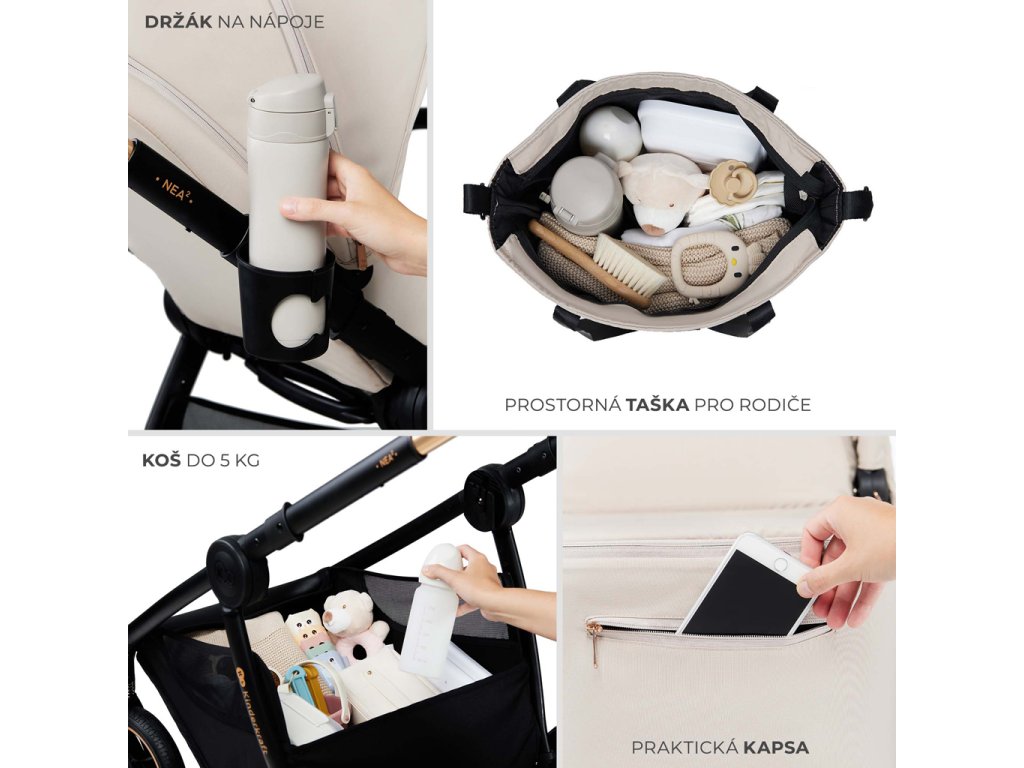 Toto je NEA 2 - multifunkčný kočík 2v1, ktorý vzbudí váš záujem kompaktným dizajnom a kolesami do každého terénu. Veľké kolesá vám bez väčších problémov umožnia prekonať vysoké obrubníky, či nerovné mestské chodníky. NEA 2 je odpoveďou na potreby moderných rodičov, ktorí hľadajú stabilný, pevný, no napriek tomu dobre ovládateľný kočík. Okienko na strieške vám umožní jednoduchú kontrolu, či batoľa počas prechádzky zaspalo, a keď sa náhodou stane, že dieťa kočík zašpiní - poťah na pranie ľahko stiahnete. Brzda STOP & RIDE umožňuje ľahké zaistenie a odistenie kočíka a jednoduchý systém skladania a praktické riešenia ako sú SELF STANDING alebo AUTO LOCK uľahčujú prepravu a skladovanie. Fusak Jibot 3v1 Horizontal Ink Black je súčasťou balenia. Čo Vám NEA 2 ponúka? - Multifunkčný kočík: veľká vanička, pohodlný kočík, možnosť cestovania v dvoch smeroch. - Od narodenia do 22 kg – kočík má veľkú vaničku s mäkkým matracom, ktorú môže dieťa používať do 9 kg alebo do chvíle, keď sa začne prevracať. Sedadlo kočíka je možné namontovať smerom dopredu alebo dozadu voči smeru jazdy. - Kolesá odolné proti prepichnutiu. - Obratný kočík – ľahká konštrukcia a pohodlná teleskopická rukoväť pre rodiča umožňujú ľahké manévrovanie – aj jednou rukou! - Pohodlná, priestranná vanička s praktickou rukoväťou, ktorá rodičom umožňuje ľahko prenášať dieťa. - Veľké kolesá s tlmičmi nárazov umožňujú jednoduché zdvihnutie kočíka a nevyžadujú pumpovanie. - Sada praktického príslušenstva: univerzálne adaptéry na autosedačku, nánožník pre vaničku a športovú časť, matrac do vaničky, držiak na pohár, pláštenka, sieťka proti hmyzu a nová prebaľovacia taška. - Vďaka adaptérom zahrnutým v sade môžete jednoducho pripevniť autosedačku na rám kočíka. - Na všetky druhy počasia – kočík má striešku s ventilačným panelom, dodatočnou slnečnou clonou a okienkom, cez ktoré vidíte svoje dieťa v kočíku. Strieška je vyrobená z nepremokavého materiálu UPF50+, ktorý chráni vaše dieťa pred škodlivým UV žiarením. - Nová magnetická pracka a dizajn podložiek. - Predné kolesá sú otočné (360 stupňov) a je možné ich uzamknúť na priamu jazdu. - Košík s nosnosťou až 5 kg. Rozmery: - rozmery zloženého výrobku: 40 × 67 × 60 cm - rozmery rozloženého výrobku: 112 × 60 × 88 cm Kolesá: - priemer predných kolies: 21 cm - priemer zadných kolies: 29 cm Ostatné: - šírka sedačky: 31 cm - dĺžka sedačky: 21 cm - šírka chrbtovej opierky: 29 cm - dĺžka chrbtovej opierky: 55 cm - šírka podnožky: 30 cm - dĺžka podnožky: 18 cm - dĺžka sedačky v ľahu: 94 cm - vzdialenosť sedačky od zeme: 56 cm - výška rodičovskej rukoväte: 98,5-101-103,5-106 cm - rozmery košíka: 49 x 39 x 18 cm - priemer držiaka na pohár: 7 cm - vonkajšie rozmery vaničky: 83 x 42 x 65 cm - vonkajšie rozmery vaničky so zloženou búdkou: 83 x 42 x 33 cm - vnútorné rozmery vaničky: 76 x 33 x 23 cm - vnútorný priemer predných kolies: 14,5 cm - vnútorný priemer zadných kolies: 21,5 - hmotnosť výrobku: 11,6 kg - hmotnosť rámu s kolesami: 7,8 kg - hmotnosť samotnej sedačky: 3,8 kg - hmotnosť samotnej vaničky: 4 kg (SK) UPOZORNENIE! Tento výrobok nie je vhodný na behanie, korčuľovanie. Výrobok je určený pre deti s hmotnosťou / veku: gondola od narodenia do 9 kg, kočík od 0 mesiacov do 22 kg alebo do 4 rokov, v závislosti od toho, čo nastane skôr. Týka sa vaničky: UPOZORNENIE! Nikdy nepoužívajte prenosnú tašku so stojanom. Tento produkt, je určený pre deti, ktoré si nedokážu samy sadnúť, otáčať sa na bruško ani štvornožkovať. Maximálna váha dieťaťa: 9 kg. Adresa dodávateľa: Supl4kraft sp. z o.o. ul. Tatrzanska 1/5, 60-413 Poznan, Poland support@kinderkraft.com www.kinderkraft.comDodatočné parametre