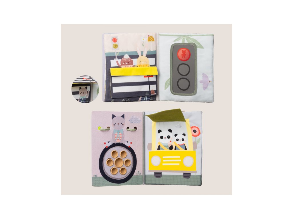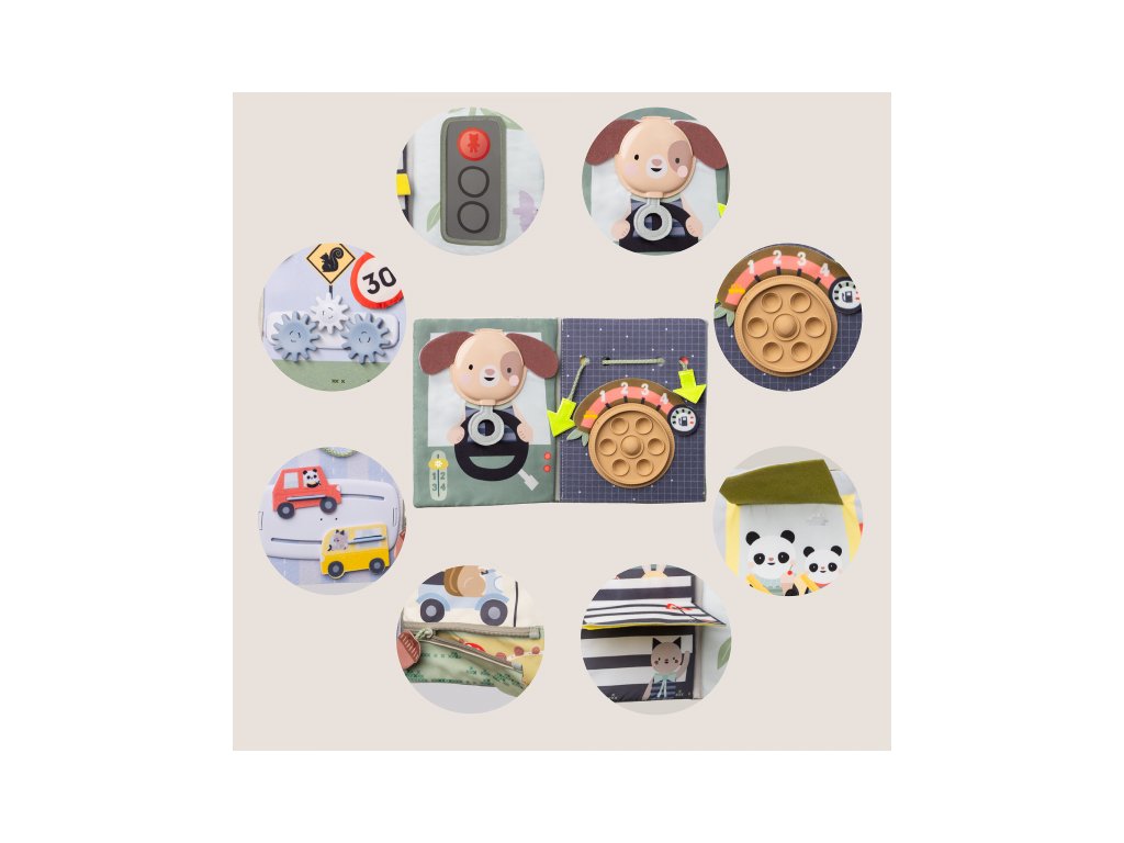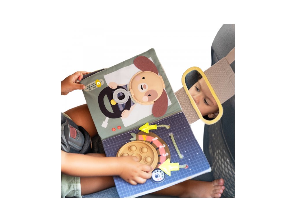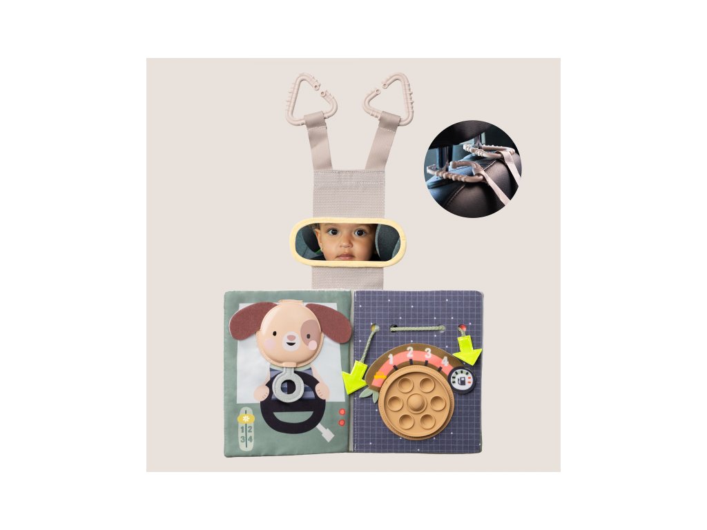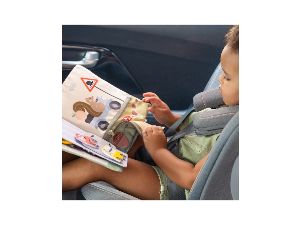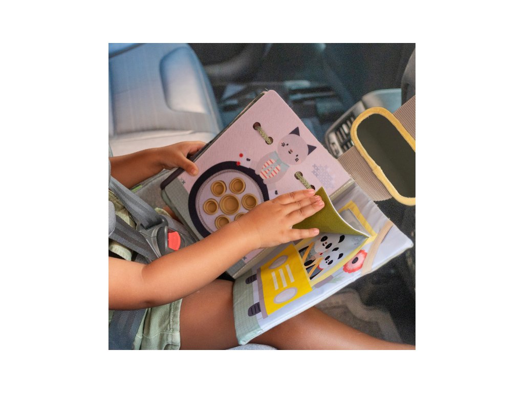 Knižka s aktivitami do auta Taf Toys Busy Book premení každú cestu v zábavné hranie plné prekvapení a rôznorodých aktivít. Pult sa jednoducho upevní na opierku hlavy, takže je hračka pre dieťa v autosedačke vždy na dosah – či už sedí proti smeru alebo po smere jazdy. V knižke s krásnymi motívmi dopravných prostriedkov a zvieratiek nájdete pohyblivé autíčka, pop-it bublinky, okná s prekvapením a mnoho ďalších aktivít, ktoré malých cestovateľov zabavia a rodičom poskytnú pokoj na riadení.