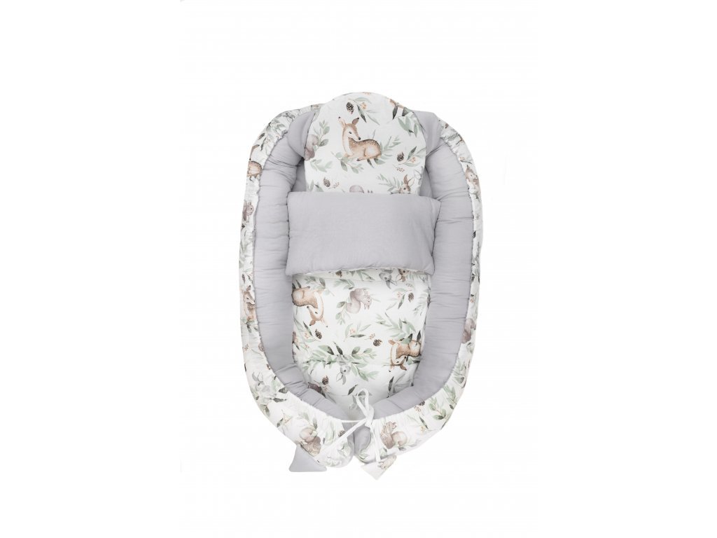 V prvých týždňoch života bábätka odporúčame kokon stláčať, aby bola čo najpriliehavejšia. V nasledujúcich týždňoch je možné kokon uvoľniť a individuálne prispôsobiť potrebám vášho dieťatka. Bavlnená šnúrka vám umožňuje nastaviť veľkosť kokónu a použitie dvoch vzorov a možnosť ich obrátenia poskytuje vizuálnu stimuláciu pre dieťa a robí z postieľky zaujímavý objekt na pozorovanie.