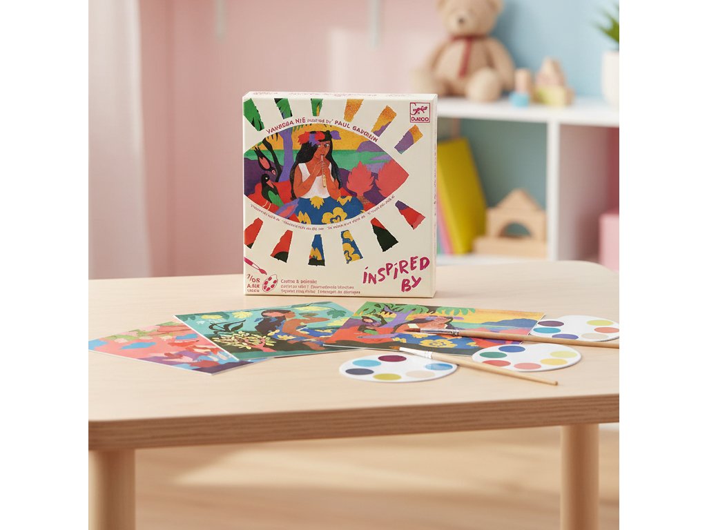 Kreatívna sada Maľovanie podľa Paula Gauguinea Objav štýl slávneho maliara: vymaľuj 4 polynézske motívy vodovými farbami priamo z paletiekKreatívna sada Maľovanie podľa Paula Gauguinea pozýva deti objaviť atmosféru exotických obrazov cez jednoduché a veľmi efektné maľovanie.Každý obrázok je už čiastočne ilustrovaný a ty dopĺňaš biele plochy farbou – krok za krokom tak vznikne hotové dielo v „gauguinovskom“ duchu.Praktické je, že ku každému obrázku patrí vlastná kartónová paletka s farbami.Stačí namočiť štetec do vody a farbu naberať priamo z paletky – bez miešania, bez tubičiek a bez neporiadku.Rýchly prehľad odporúčaný vek: od 7 rokov rozvíja: jemnú motoriku, cit pre farby, sústredenie, trpezlivosť v balení: 4 obrázky 20 × 20 cm, 4 paletky farieb, štetec, ilustrovaný návodPrečo si ju deti zamilujú hotový výsledok vyzerá „umelecky“ aj bez skúseností – vďaka predkresleným detailom farby sú pripravené priamo v paletkách – stačí voda a štetec každý obrázok má vlastnú paletu – ľahšie sa trafia správne odtiene spája tvorenie s poznaním – cez návod sa deti zoznámia s umeleckým štýlomAko to funguje Vyber si obrázok a priprav si pohár s vodou a papierovú utierku. Namoč štetec, jemne ním prejdi po paletke a naber farbu priamo z kartónu. Vyfarbuj určené plochy – začni svetlejšími farbami a postupne pridávaj tmavšie akcenty. Nechaj obrázok vyschnúť a porovnaj výsledok s odporúčanou paletou v návode.Obsah balenia 4× obrázok na akvarelovom papieri (20 × 20 cm) 4× kartónová paletka s farbami (pre každý obrázok zvlášť) 1× štetec 1× ilustrovaný návod krok za krokom (aj s informáciami o umelcovi)Technické parametre materiál: akvarelový papier, kartón, farba, štetec počet obrázkov: 4 rozmer obrázkov: 20 × 20 cm rozmery balenia: cca 24 × 23 × 1 cmDodatočné parametre
