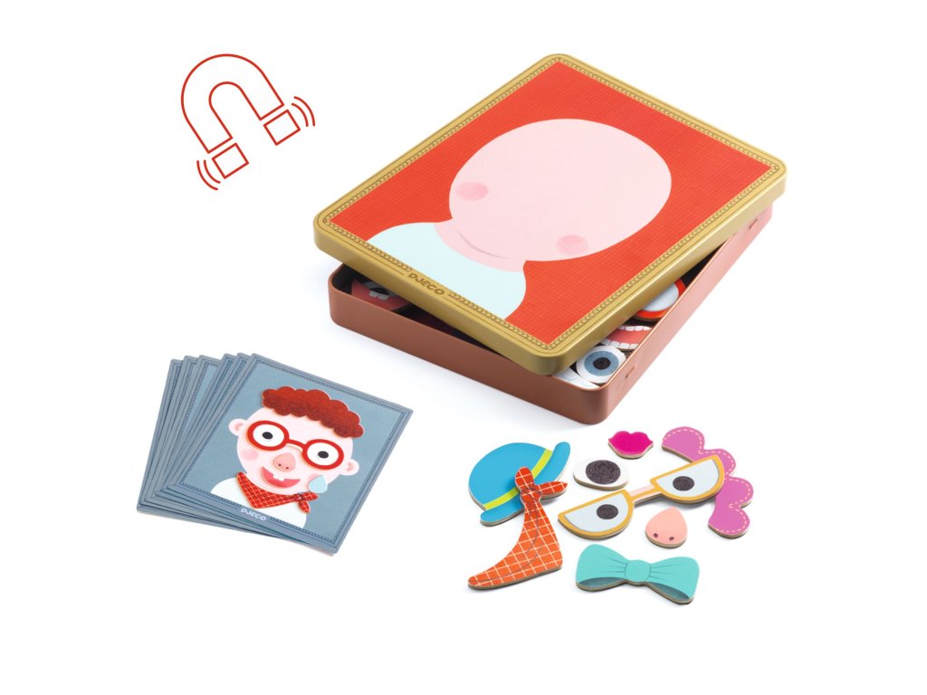 Magnetická skladačka Portréty Vytváraj tváre, kombinuj výrazy a vymýšľaj príbehyMagnetická skladačka Portréty je kreatívna magnetická hra, v ktorej deti pomocou magnetických dielikov skladajú rôzne tváre a portréty. Kombinovaním očí, úst, nosov, účesov a doplnkov môžu vytvoriť veselé, smiešne aj úplne bláznivé postavičky.Dieťa si vyberie magnetickú podložku a postupne na ňu prikladá jednotlivé magnety, mení ich polohu a skúša nové kombinácie. Hra nemá jedno správne riešenie – podporuje fantáziu, tvorivosť a vlastné nápady.Pre koho je vhodná: odporúčaný vek: od 3 rokov pre deti, ktoré rady kombinujú, skladajú a tvoria pre rozvoj fantázie a jemnej motoriky vhodná na samostatnú hru aj hru s rodičomČo sa dá s produktom robiť skladať rôzne tváre a portréty z magnetických dielikov meniť výrazy tvárí a vytvárať emócie kombinovať účesy, doplnky a črty tváre vymýšľať príbehy a mená postavičiek hrať sa opakovane – každý portrét je inýObsah balenia magnetická podložka magnetické dieliky tvárí a doplnkov ilustrované kartičky s predlohamiDodatočné parametre