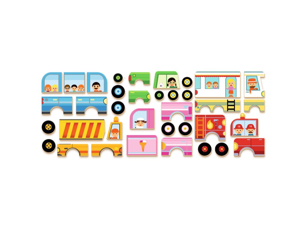 Magnetická skladačka Vozidlá Poskladaj autá, stroje a vymýšľaj vlastné dopravné príbehyMagnetická skladačka Vozidlá je kreatívna magnetická hra, v ktorej deti skladajú rôzne dopravné prostriedky pomocou magnetických dielikov. Kombinovaním kolies, karosérií, kabín a doplnkov si môžu vytvoriť klasické aj úplne bláznivé vozidlá podľa vlastnej fantázie.Dieťa si vyberie magnetickú podložku a postupne na ňu prikladá magnetické časti, mení ich poradie a skúša nové kombinácie.Pre koho je vhodná: odporúčaný vek: od 3 rokov pre deti, ktoré milujú autá, stroje a dopravné prostriedky pre rozvoj fantázie a jemnej motoriky vhodná na samostatnú hru aj hru s rodičomČo sa dá s produktom robiť skladať rôzne typy vozidiel z magnetických dielikov kombinovať časti a vytvárať vlastné originálne stroje meniť detaily a skúšať nové riešenia vymýšľať dopravné príbehy a situácie hrať sa opakovane – žiadne vozidlo nemusí byť rovnakéHlavné benefity magnetická hra s množstvom kombinácií rozvíja fantáziu, kreativitu a technické myslenie trénuje jemnú motoriku a koordináciu oko–ruka podporuje samostatné a tvorivé hranie praktické balenie vhodné na doma aj na cestyObsah balenia magnetická podložka magnetické dieliky vozidiel kartičky s predlohamiDodatočné parametre