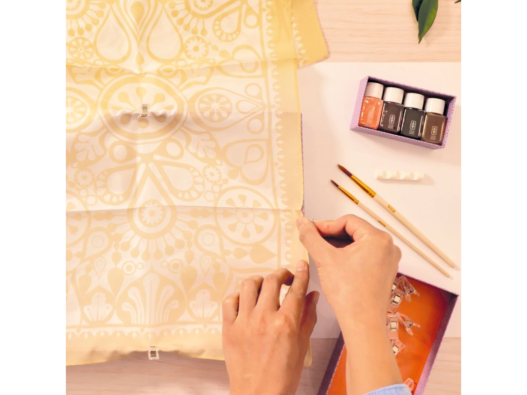 Maľovanie na hodváb Ateliér 11 Vytvor elegantnú hodvábnu šatku: maľovanie na hodváb s hotovými kontúramiMaľovanie na hodváb Atelier 11 je veľká kreatívna sada, ktorá ťa krok za krokom prevedie technikou maľovania na hodváb. Súčasťou je hodvábna šatka pripravená na maľovanie s prednanesenými kontúrami (guttou), vďaka čomu farby nepretečú mimo vzor a výsledok pôsobí čisto a profesionálne.Farby na hodváb sa nanášajú štetcami a krásne sa rozlievajú do plôch, takže tvorenie je uvoľňujúce a zároveň veľmi efektné. Hotovú šatku môžeš nosiť, darovať alebo si ju vystaviť ako vlastné umelecké dielo.Pre koho je vhodná: odporúčaný vek: 15 – 99 rokovHlavné benefity hodvábna šatka s prednanesenými kontúrami – farby zostávajú v obrázku tvorenie, ktoré podporuje trpezlivosť, sústredenie a cit pre farby výsledkom je nositeľný doplnok – vlastnoručne maľovaná šatka súčasťou je videonávod – jednoduché vedenie krok za krokomAko tvorenie prebieha šatku upevníš pomocou sponiek, aby sa s ňou pohodlne pracovalo štetcom nanášaš farby do jednotlivých plôch podľa kontúr nechá sa zaschnúť a šatka je pripravená na nosenieObsah balenia 1 hodvábna šatka pripravená na maľovanie (cca 130 × 34 cm) s prednanesenými kontúrami 4 farby na hodváb (4 × 30 ml) 2 štetce + držiak na štetce 20 sponiek na upevnenie látky šablóna (pomôcka k postupu) + návod a karta s QR kódom k videuDodatočné parametre