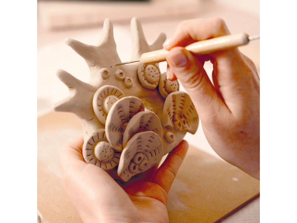 Modelovanie z hliny Ateliér 85 Vymodeluj koral ako sochár: skutočná hlina, tvarovanie do hĺbky a finálne maľovanie aj lakovanieModelovanie z hliny Ateliér 85 je kreatívna sada pre tínedžerov a dospelých, ktorá ťa naučí pracovať so skutočnou hlinou – od prvého tvaru až po hotové dielo pripravené na vystavenie.Podľa predlohy vytvoríš plastický koral: rukami si pripravíš základný objem a potom pomocou sochárskych nástrojov vytiahneš reliéf, dutinky a textúry, ktoré robia výsledok naozaj „živý“.Socha tvrdne na vzduchu (bez vypaľovania), po vyschnutí ju dotvoríš farbami a na záver zafixuješ lakom.Všetko vedie videonávod, takže postup zvládneš krok za krokom aj bez skúseností.Rýchly prehľad odporúčaný vek: od 15 rokov technika: modelovanie z hliny + maľovanie + lakovanie projekt: 1 modelovaná socha (koral) na vystavenie čas tvorenia: približne 4 hodiny + čas na vyschnutie rozvíja: trpezlivosť, jemnú motoriku, cit pre detail, priestorové vnímaniePrečo si ju zamiluješ kombinuje voľné tvarovanie aj presné dotváranie detailov – od objemu po textúru hlina schne prirodzene – bez pece a bez špeciálneho vybavenia maľovanie a lak dodajú povrchu hotový „ateliérový“ finiš výsledok si vystavíš na maľovanom drevenom podstavciAko sa s tým tvorí Príprava: na drevenú pracovnú dosku si nachystaj hlinu a pomôcky. Pomocou šablóny proporcií si odhadni veľkosť základných častí. Základný tvar: vytvaruj hlavný objem koralu a uprav siluetu tak, aby sedela s predlohou. Modelovanie detailov: sochárskymi nástrojmi vytváraj dutinky, ryhy a reliéf – práve tieto prvky robia koral výrazným. Sušenie: nechaj dielo úplne vyschnúť na vzduchu (čas závisí od hrúbky a vlhkosti prostredia). Maľovanie: po vyschnutí nanes farby štetcami, pracuj vo vrstvách a zvýrazni plochy, ktoré chceš opticky vytiahnuť. Lakovanie a vystavenie: po zaschnutí farby použi lak a sochu umiestni na podstavec.Obsah balenia 3× hlina (3 × 250 g) 4× sochársky nástroj na tvarovanie a tvorbu textúr 1× šablóna proporcií 1× drevená pracovná doska 3× štetec 3× farba (3 × 10 ml) 1× lak (10 ml) 1× maľovaný drevený podstavec na vystavenie 1× predloha (model) na nasledovanie leták + karta s prístupom k video tutoriáluTechnické parametre materiál: hlina, drevo, farby a výtvarné pomôcky rozmery balenia: približne 24,5 × 31 × 5 cmDodatočné parametre